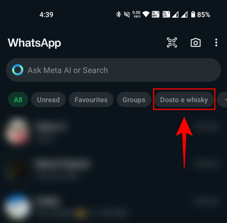 • On WhatsApp’s ‘Chat’ screen, swipe down to view the filters.