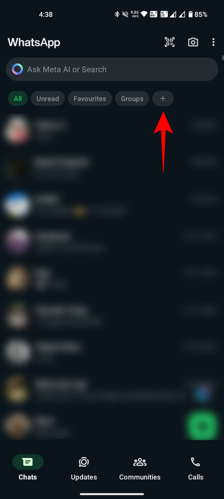 1. On the main WhatsApp ‘Chats’ screen, swipe down to reveal the chat filters.