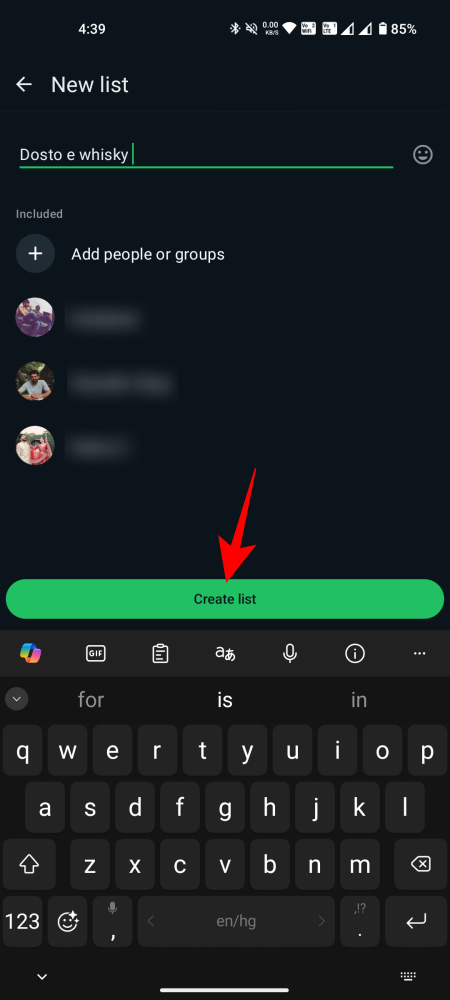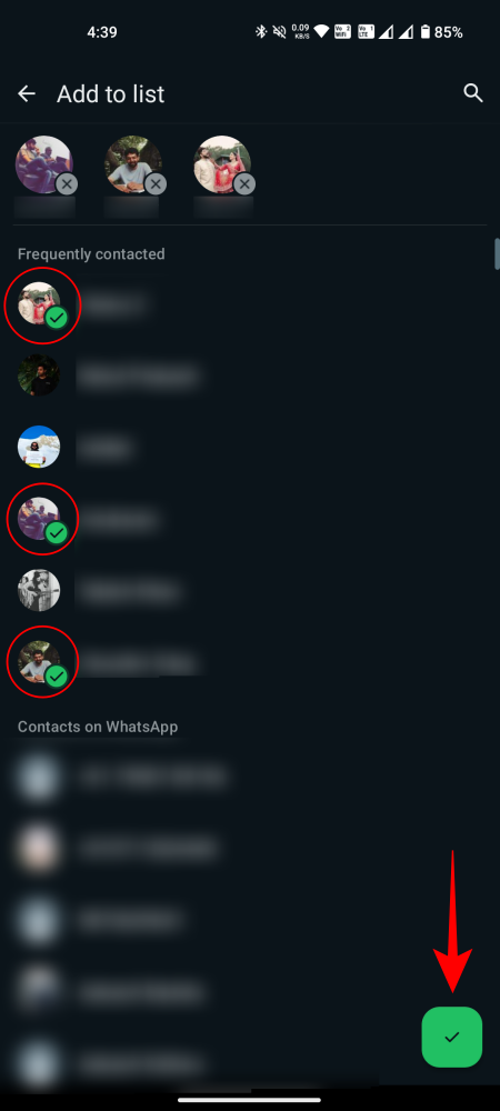 4. Select the contacts or groups you want to add to this list. Then tap on the tick. Once done, tap Create list.