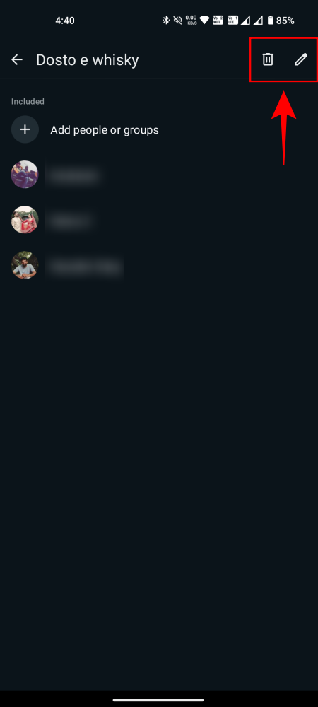 2. Here, you can view your contacts, as well as edit or delete the list itself from the top right corner.
