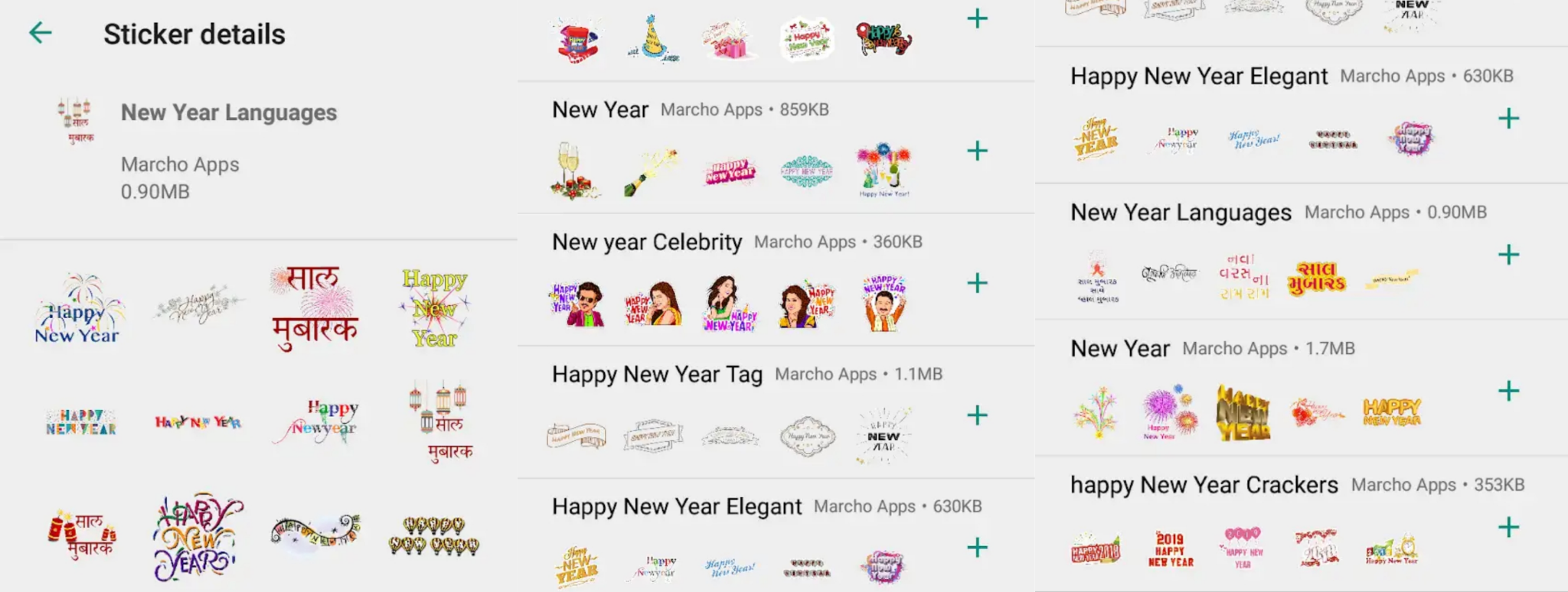 So, here is a list of apps that scoured from the Play Store. You will find the names of the apps irritatingly similar, but there’s nothing we can do to prevent this. We guess developers need to use some specific words to get to you at top of the search results, and that’s something we must get used to living with, in this industry. Anyhoo, here we go about the top WhatsApp sticker packs for the New Year 2019.