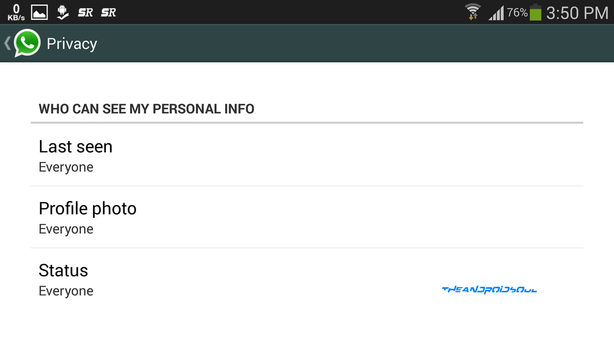 Tap on any of the 3 options listed above to choose visibility option: Everyone, My Contacts and Nobody. (Visibility options are same for all 3 features, btw!)