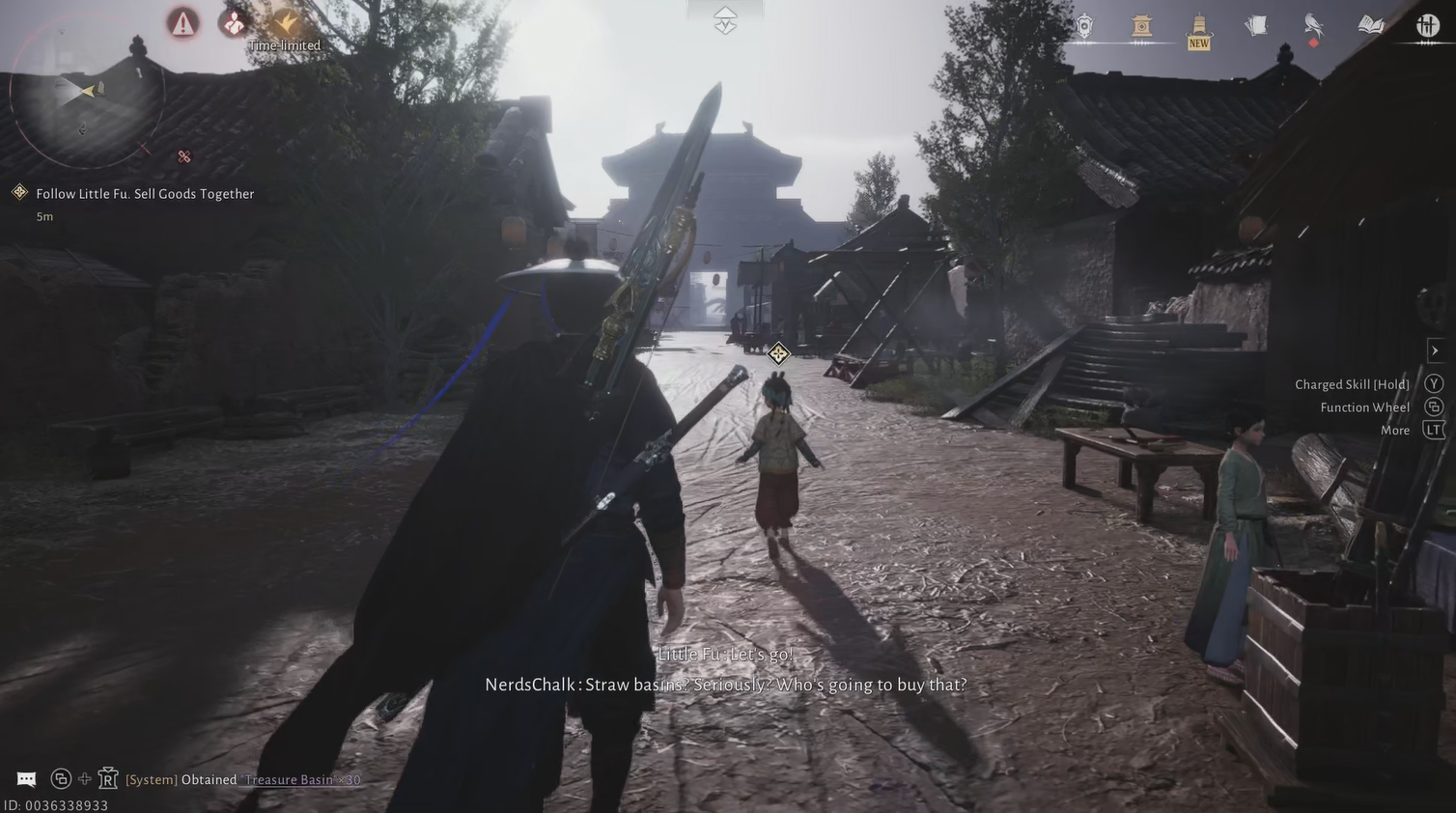 Go to the Crosswind Bazaar, find little Fu and follow her to sell goods.