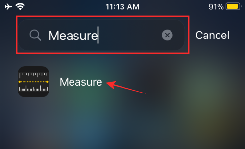 Type “Measure” in the search bar at the top and tap the ‘Search’ button on your keyboard.