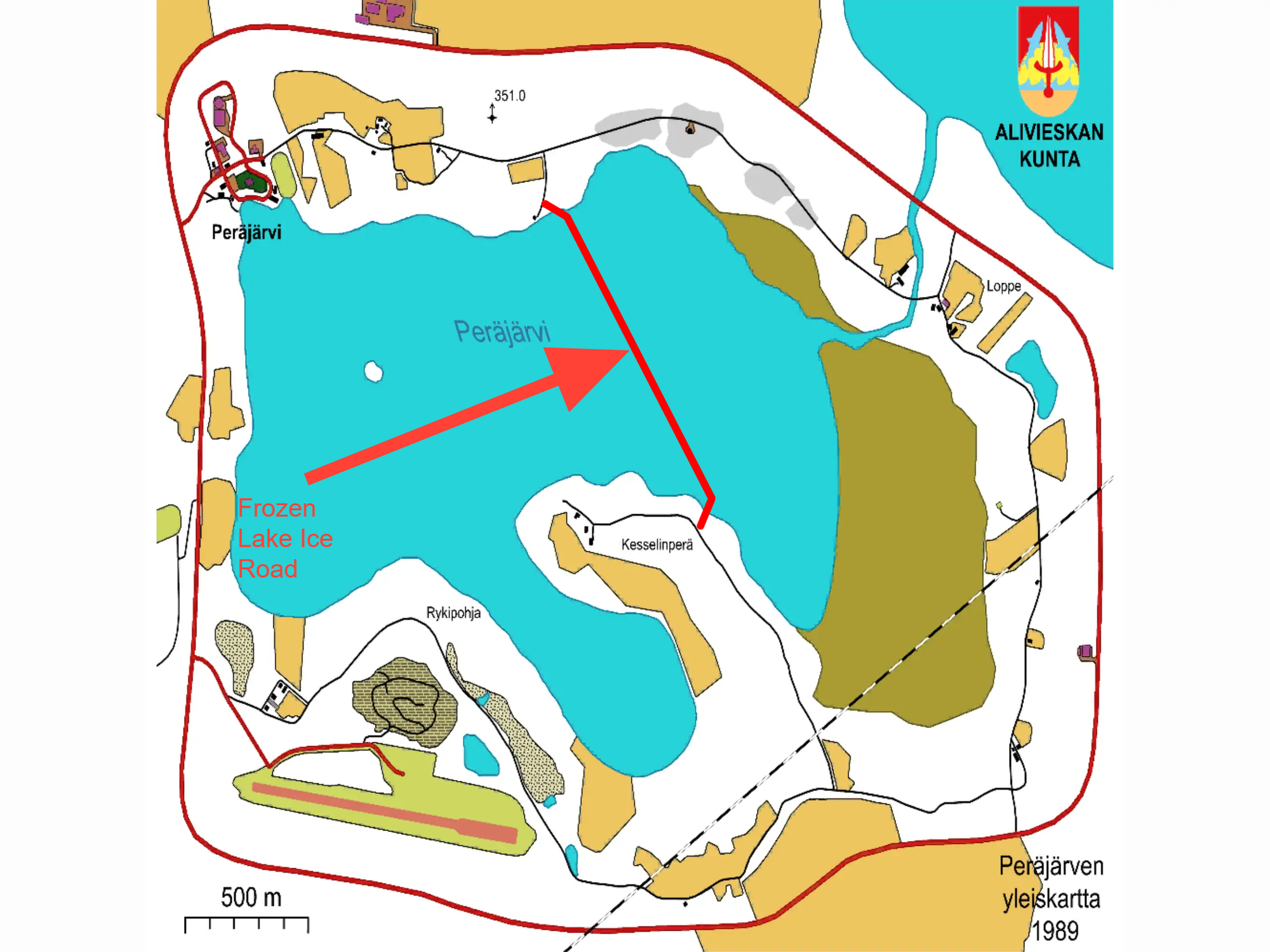 Where is the Frozen Lake Ice Road on the map