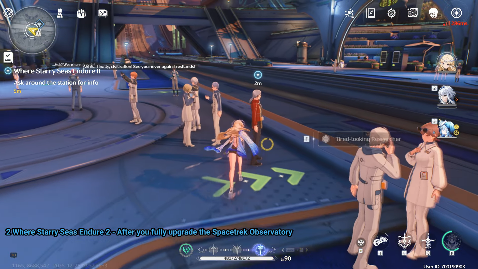 Follow the quest marker and go to the station in the Spacetreak Collective area. Talk to the NPC - Tired-looking Researcher.
