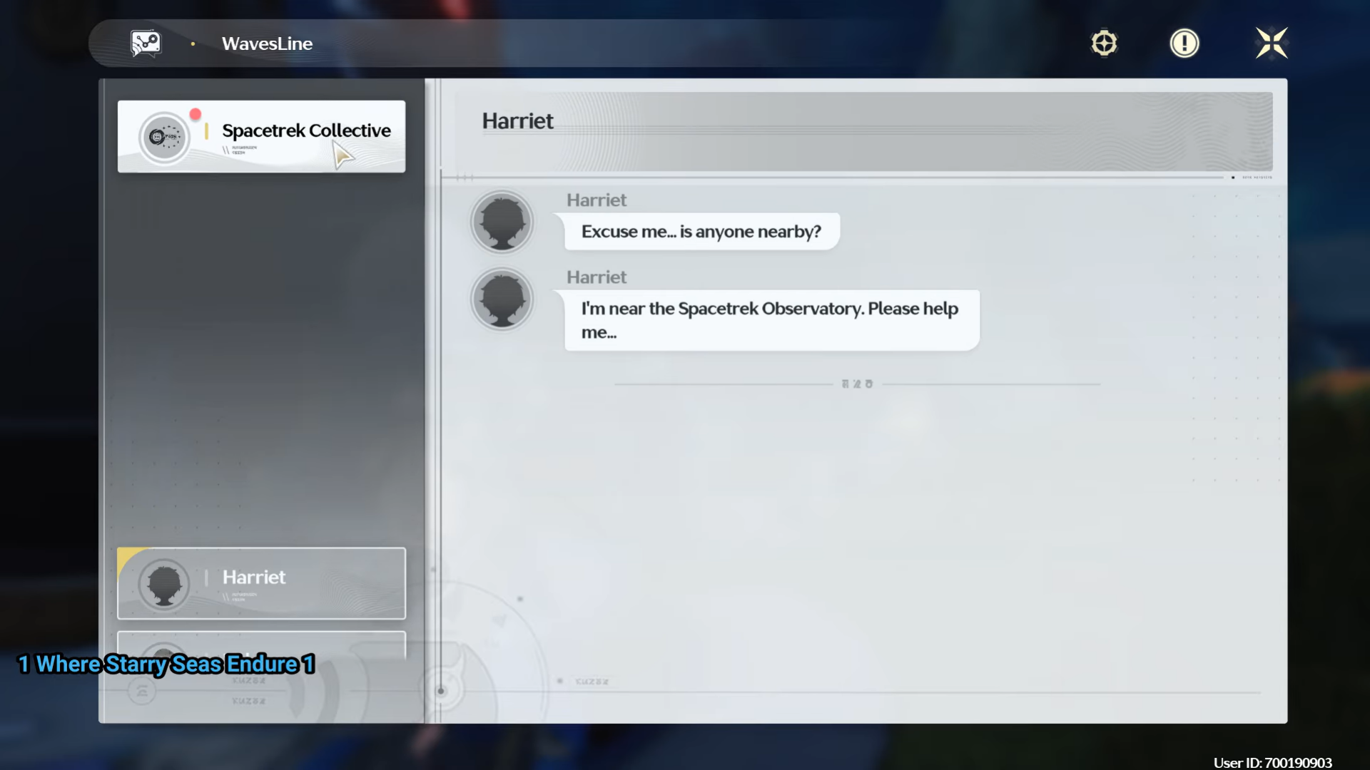 After tracking the quest, the first step is to accept the help request from Harriet. Do check the request, look for his message on the WavesLine messenger.