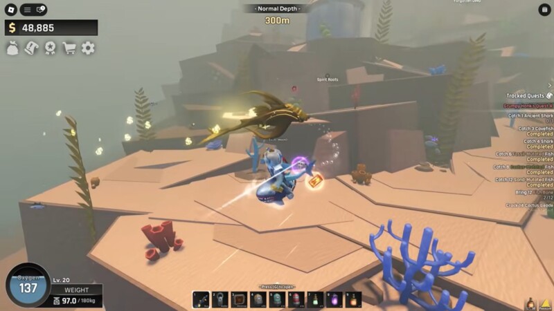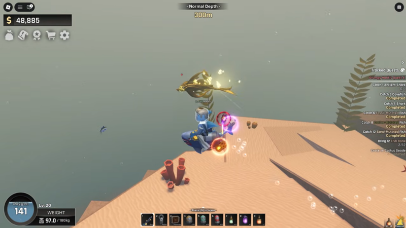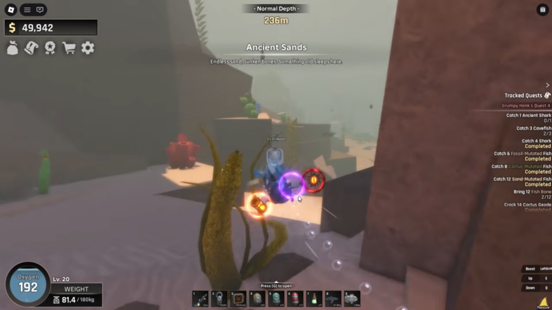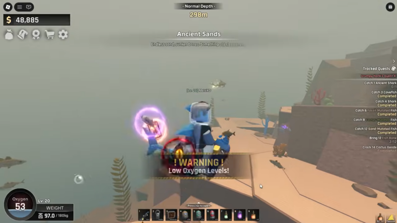 The Ancient Shark is not just a high-HP fish; it actively punishes underprepared players. Unlike passive legendary fish, this one fights back and can quickly drain oxygen if you mismanage positioning.