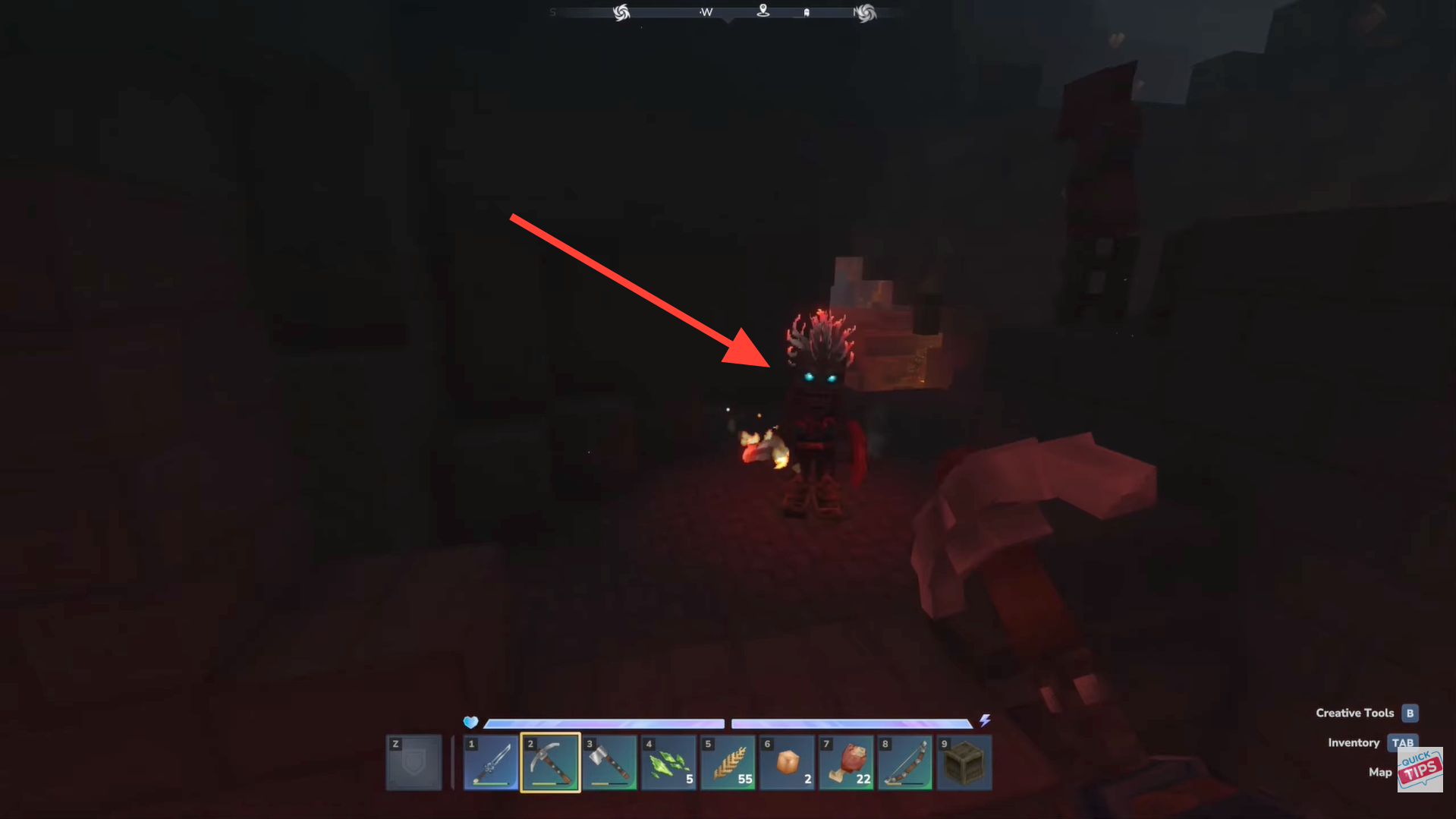 Head to the Fire Caves underground by just digging straight into the ground, especially in Zone 1. Inside these caves, you’ll encounter skeletons and other firey mobs, they are the main source of Essence of Fire. These shielded skeletons are tougher and often appear in groups, sometimes with a smaller skeleton nearby, so stay alert during fights.