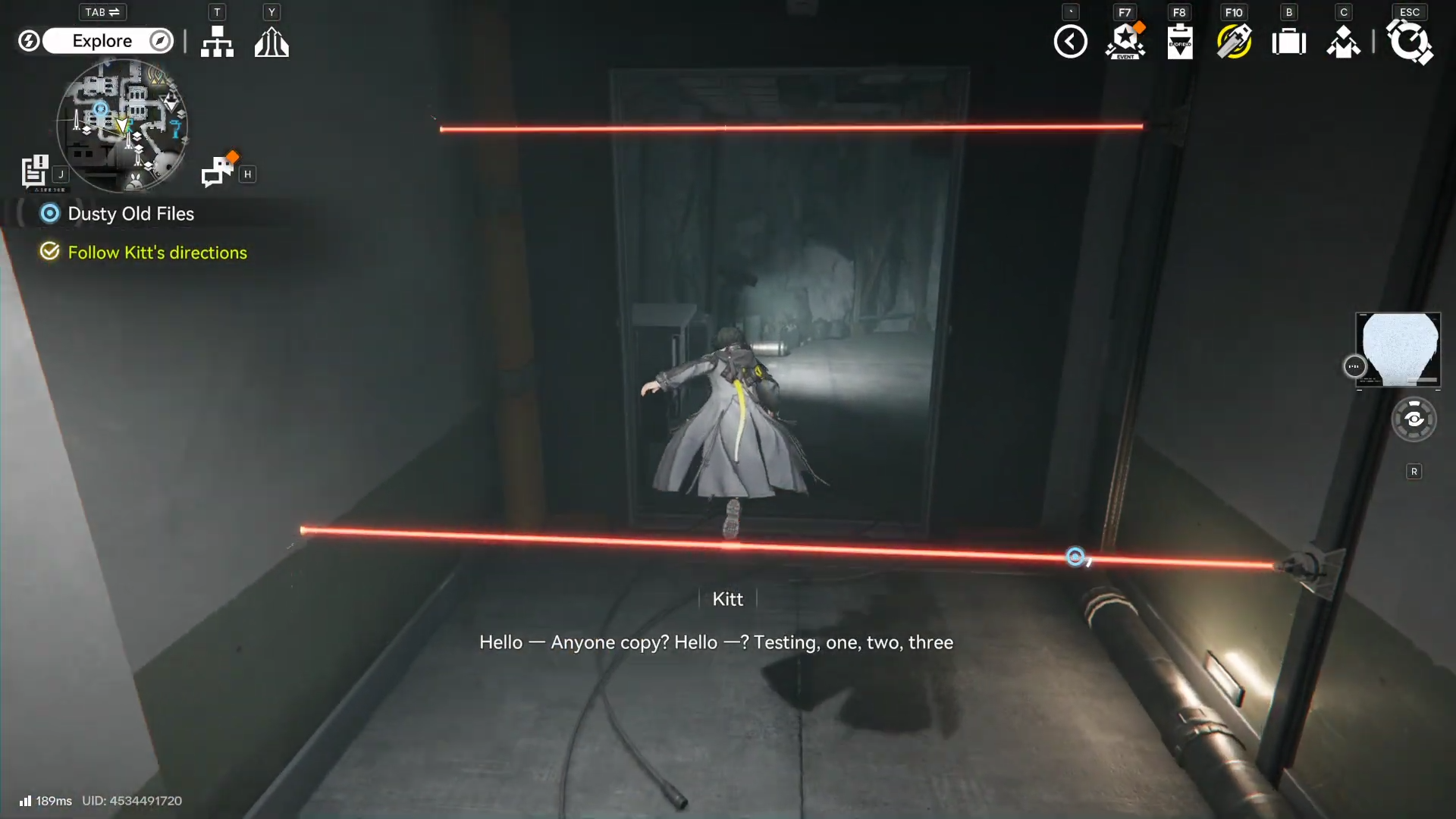Head north through the hallway that contains a laser grid, then quickly move into the left room to avoid getting hit.