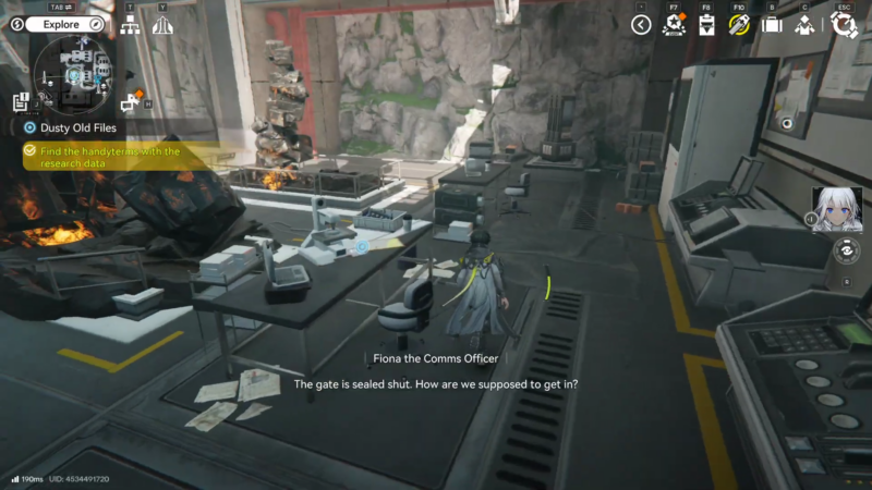 | Main objective flow | Clear blockage → collect research data files → talk to Harper → exit and auto-submit data |