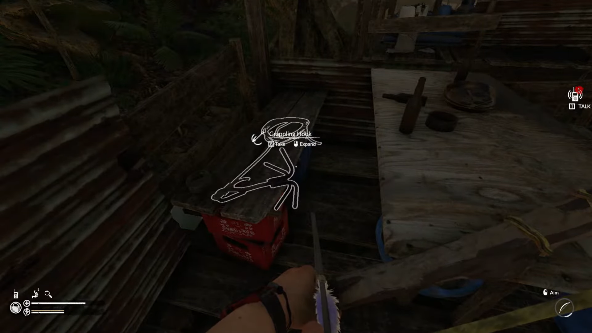 You access the mine by traveling through a cave system that includes an elevator and a generator area. After descending deeper into the mine complex, you’ll find the Grappling Hook resting on a table inside one of the interior rooms. You cannot miss it if you fully explore the mine’s main structures.