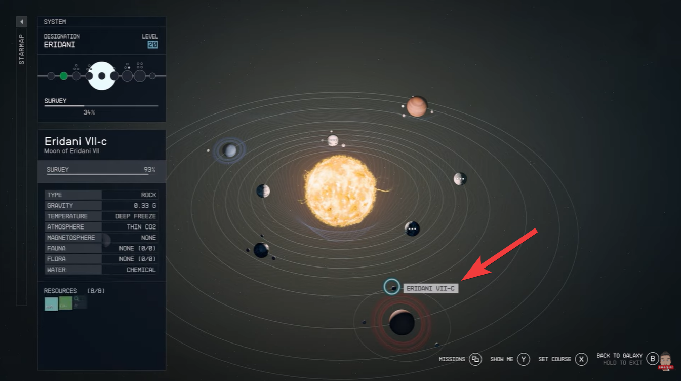Eridani VII-c is widely considered one of the most efficient early-to-mid game Titanium farming spots because of its dense and predictable resource distribution. When you arrive in the Eridani system, you’ll notice a large gas giant with distinct red rings. This is your visual anchor. Orbiting it is the moon Eridani VII-c, where the real farming happens.