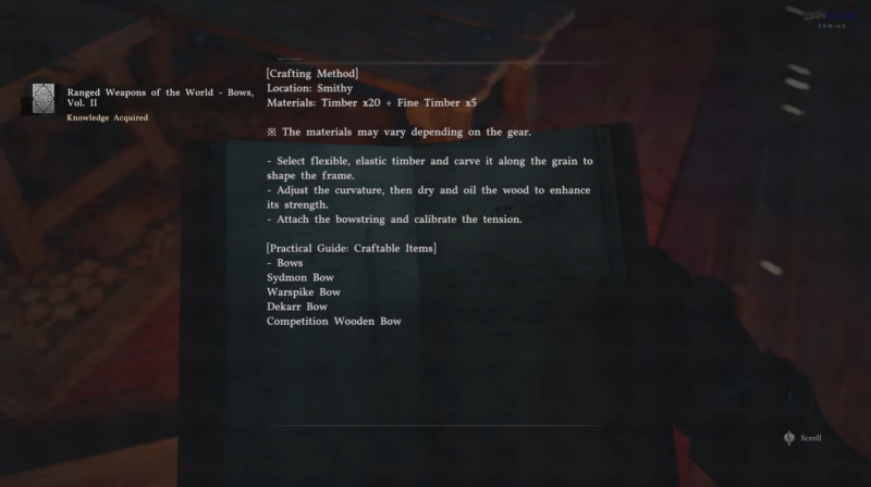 Once you read Volume II, you gain access to several bow crafting options, including the notable War Spike Bow. This bow is particularly useful if you prefer ranged combat, offering improved damage output and versatility in mid-game encounters.