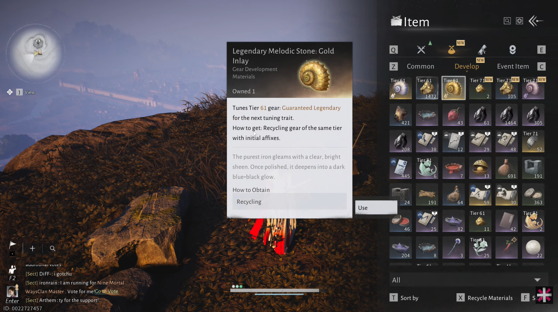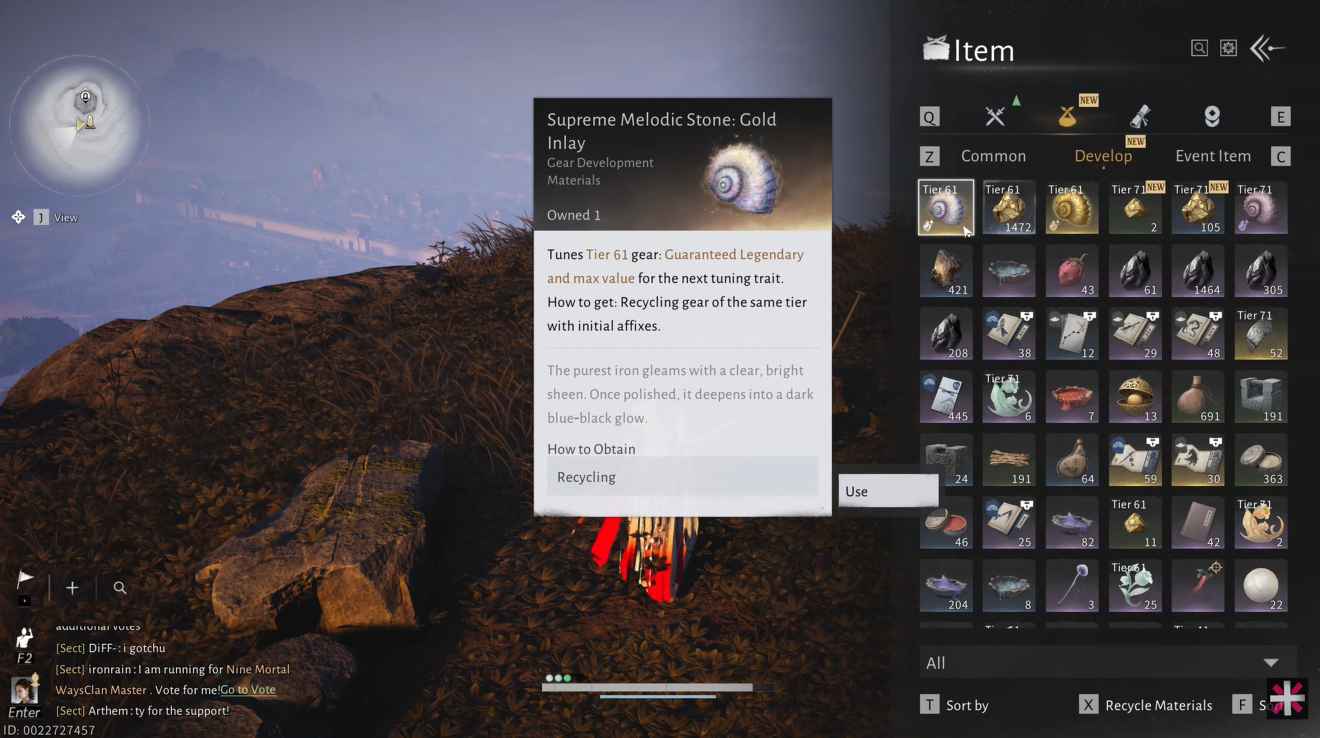 Tuning materials are both tier-locked and gear-specific. A Tier 61 stone only works on Tier 61 gear, and recycling Tier 61 gear will only yield Tier 61 tuning stones. As you progress to higher tiers, you’ll need matching stones for that gear level. You can obtain tuning stones by salvaging unwanted gear, making recycling old pieces the best way to fuel future upgrades without wasting resources.