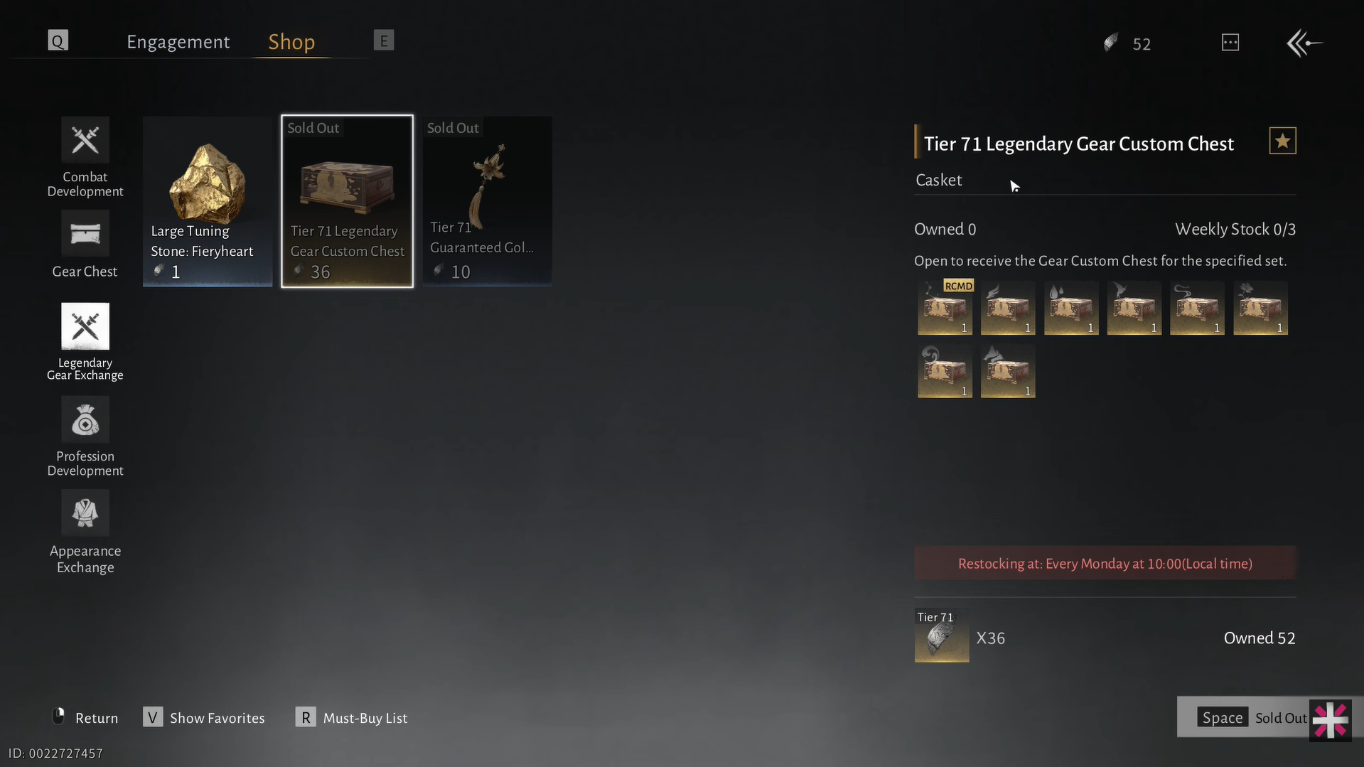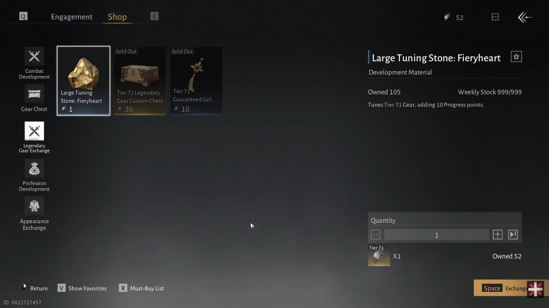 - Tier 71 Guaranteed Gold Tuning Material – costs x10 Fieryheart each, limited to 6 per week.