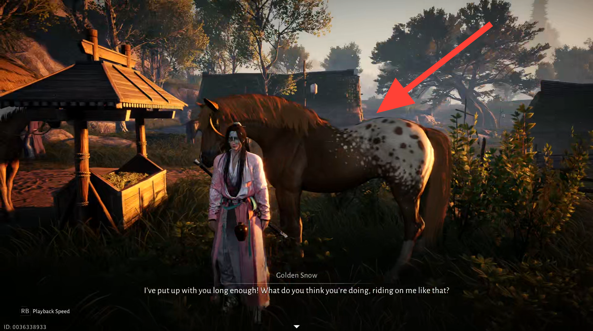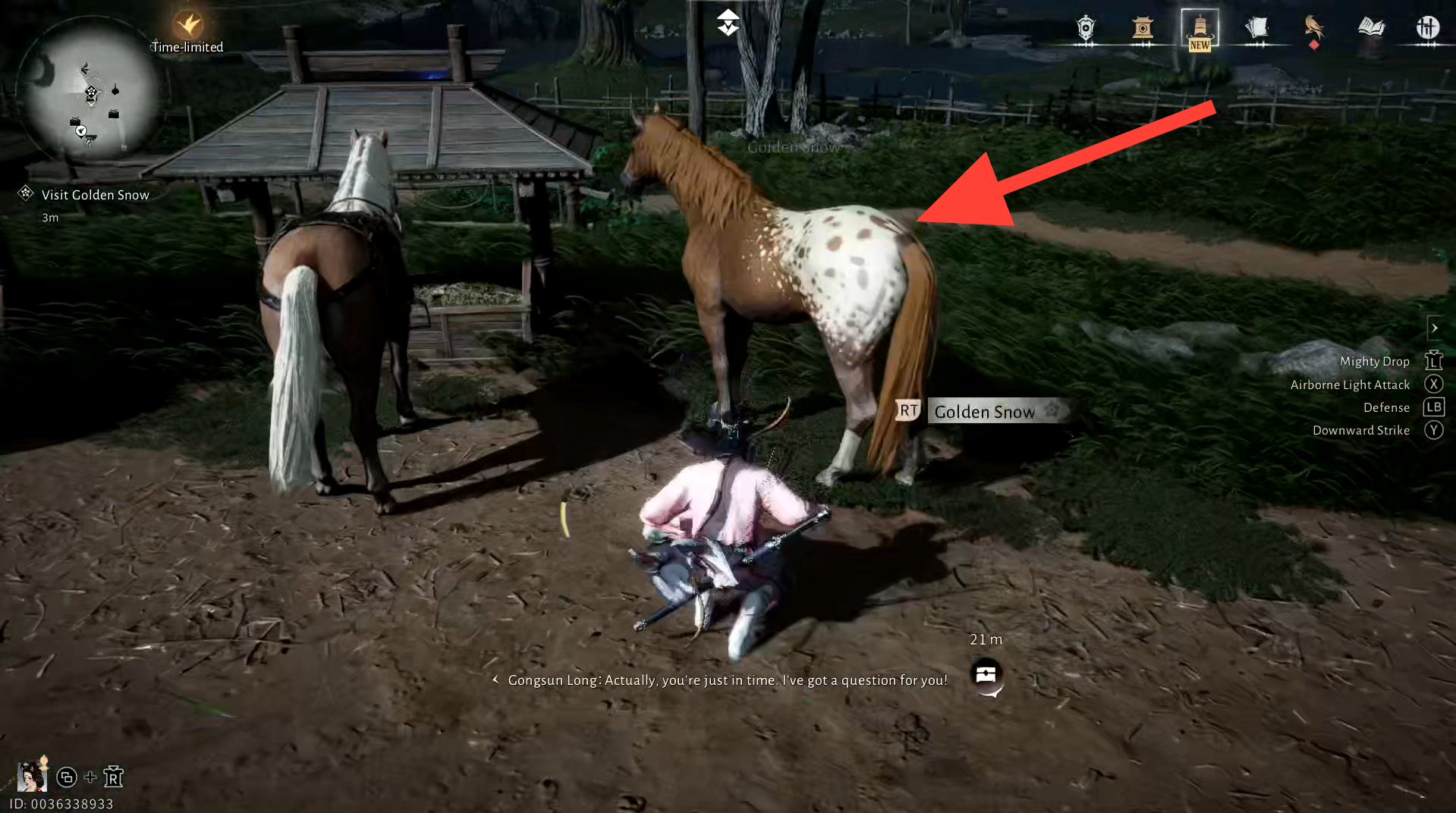 After reaching the location as shown on the map above, speak with the horse named Golden Snow.