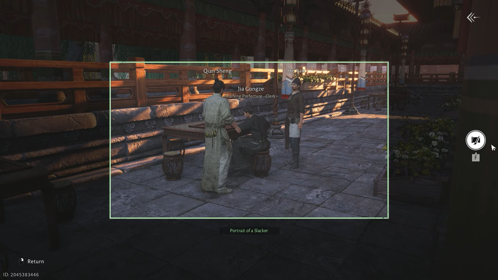 After stealing the book, speak with Jia Gongze to expose him, then make a portrait of him for the slacker.