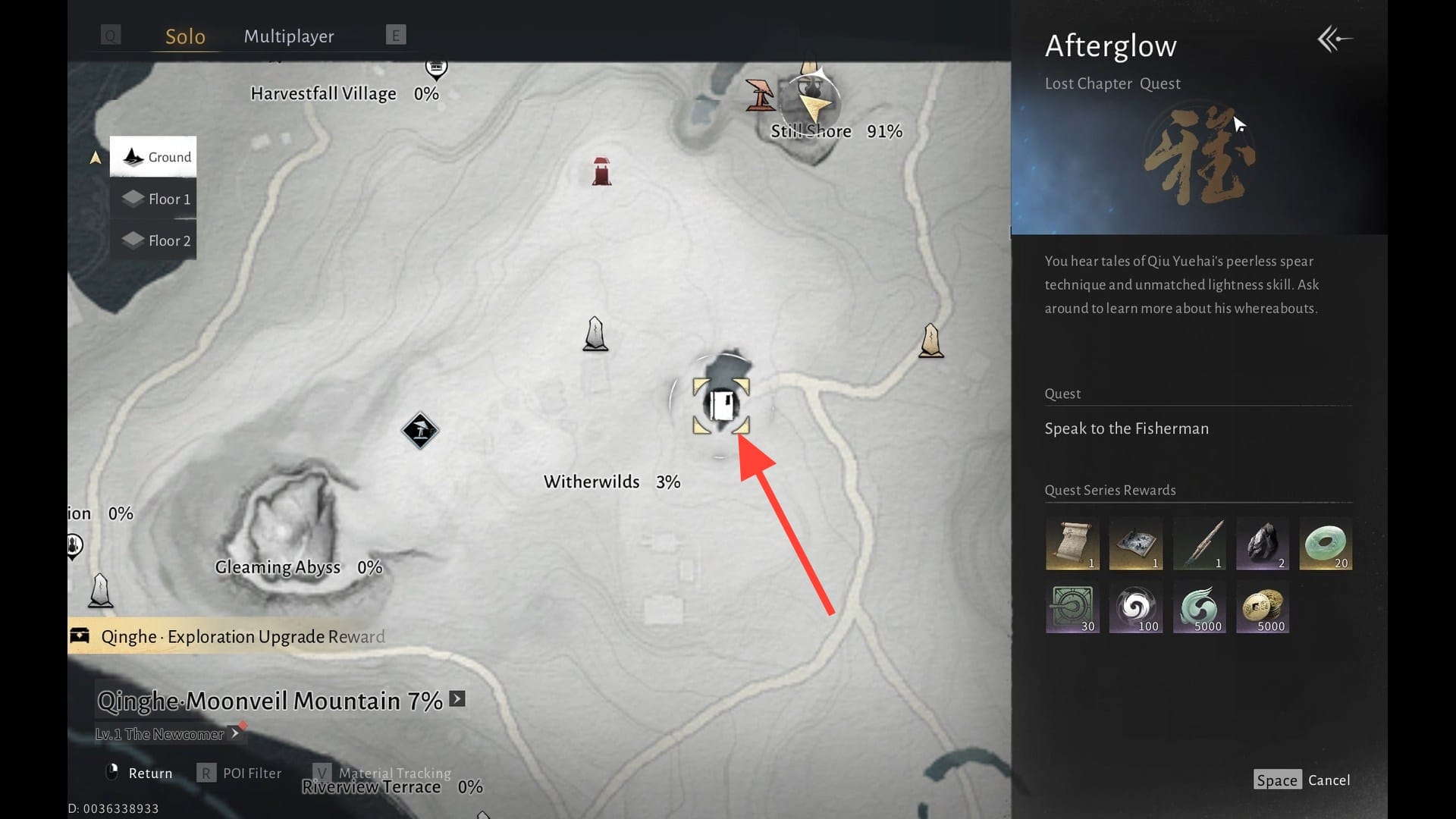 Afterglow side quest begins at the Moonveil Mountain in Verdanta Wilds of Qinghe. Afterglow is a Lost chapet mission in Where Winds Meet.