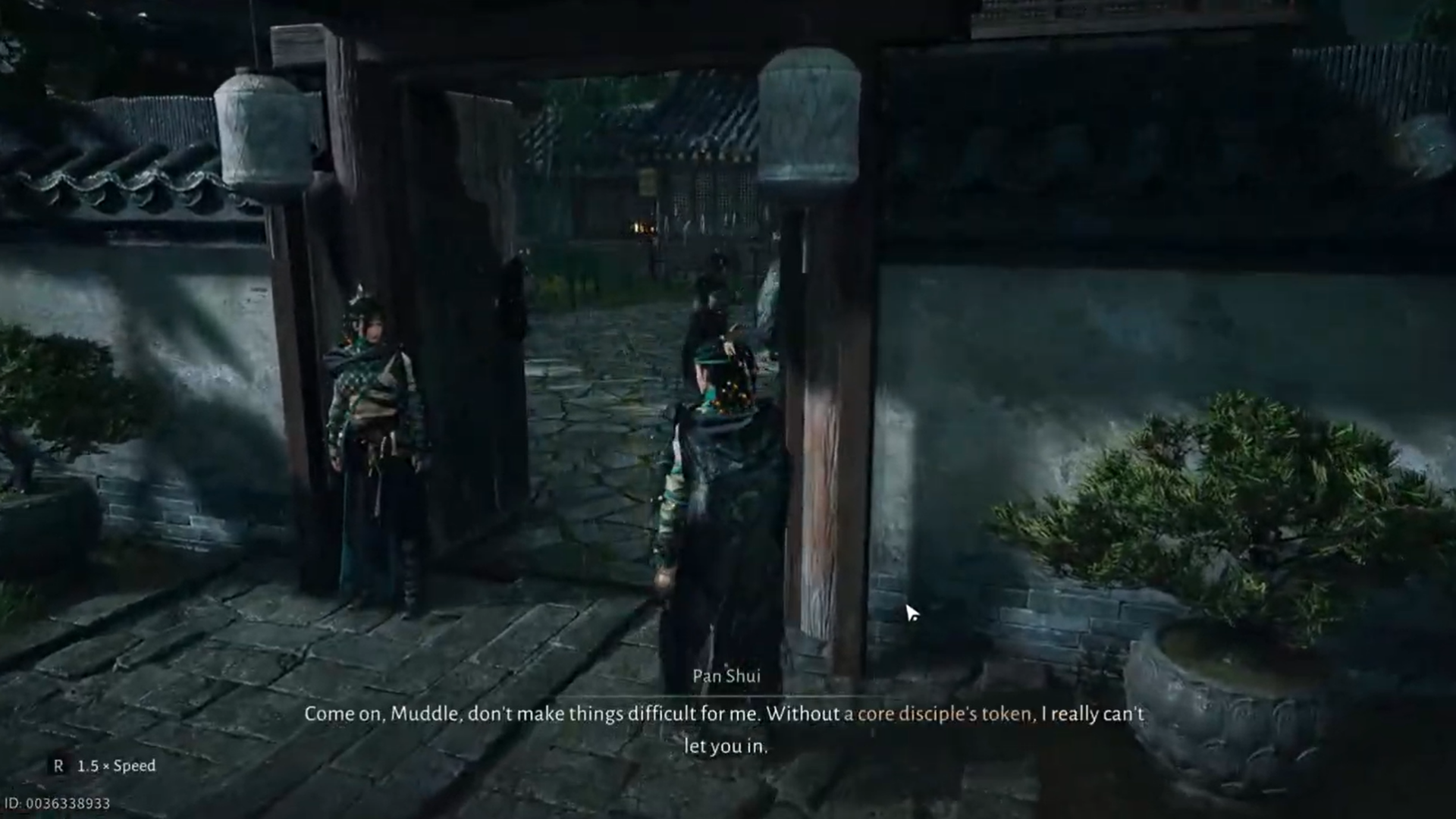 When you try to enter the Martial Hall Courtyard, you are stopped by Pan Shui, who asks you for a Core Disciple's Token.