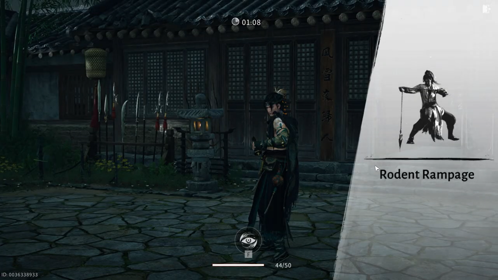 Perform skill theft by standing in the blue circle in the Martial Hall courtyard and get Rodent Rampage skill.