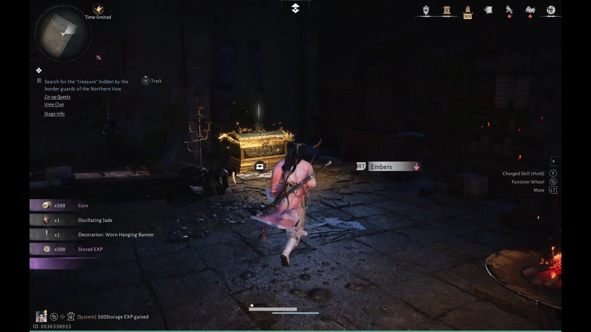 Inside the chamber, open the treasure left by Northern Vow soldiers and read the inscriptions on the walls to conclude the quest.