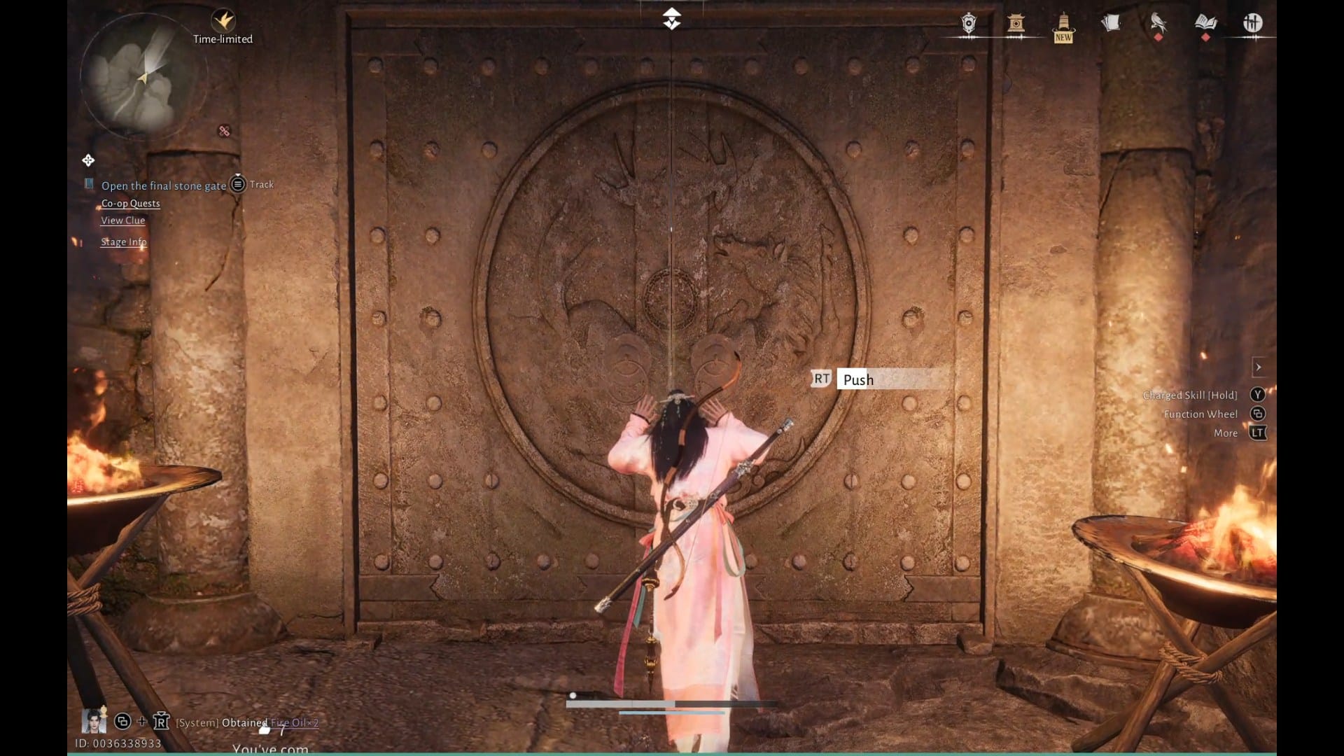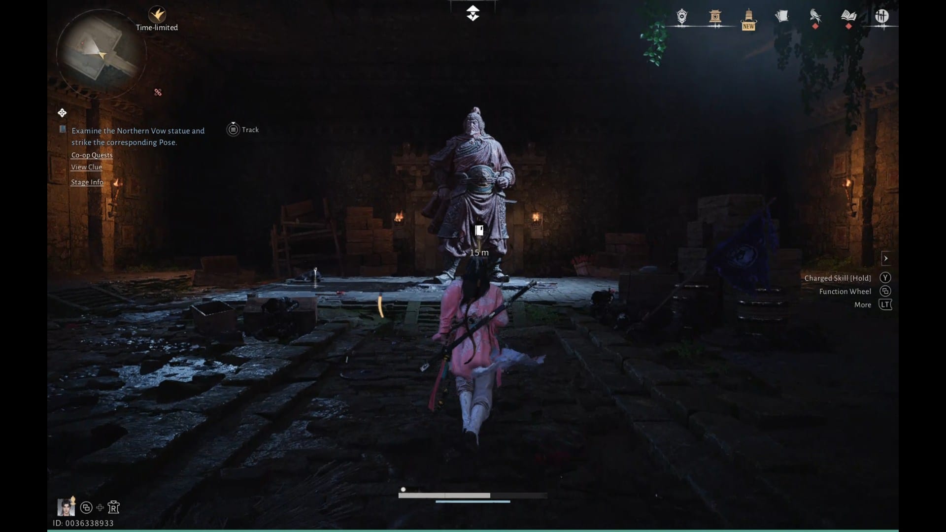 You will encounter a large statue where performing the Yanyun Oath gesture activates a wall puzzle.