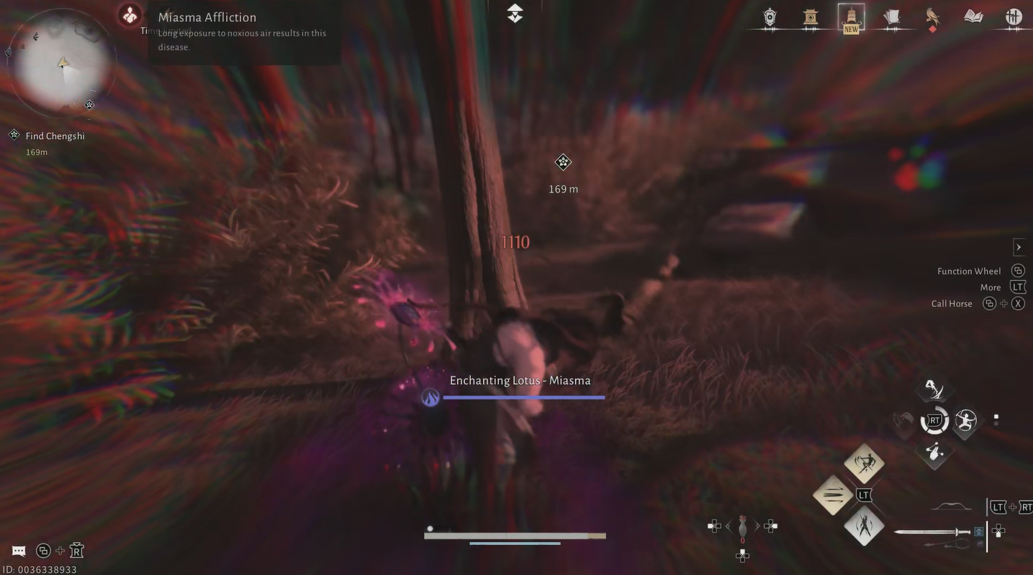 - Approaching Enchanting Lotus triggers a harmful status effect from the miasma.