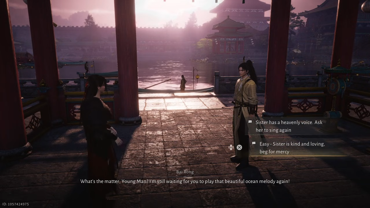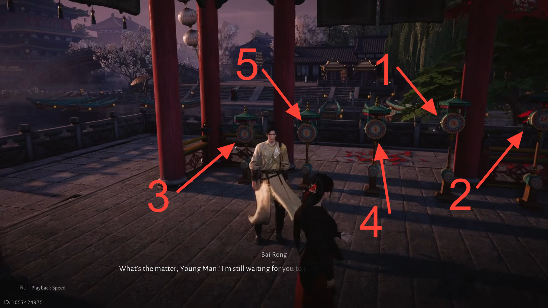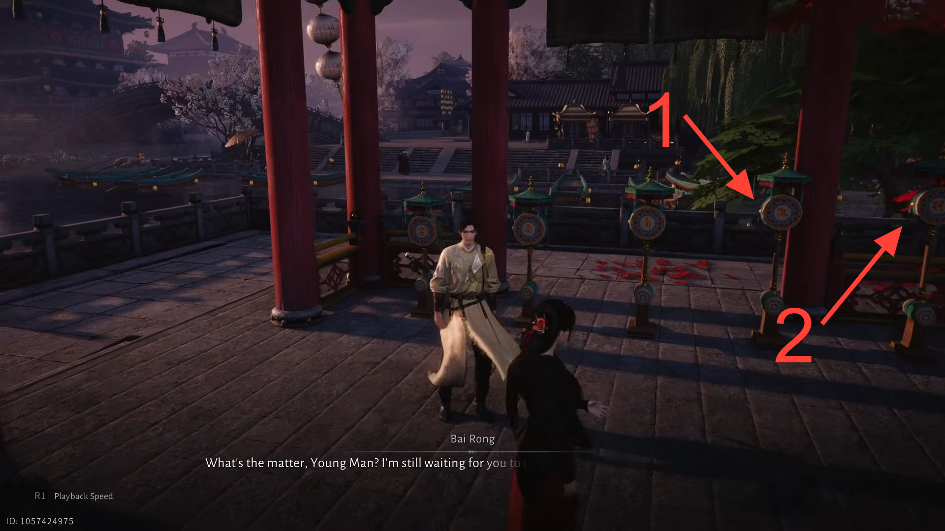- After you finish the pattern, talk to Bai Rong again to confirm the tuning and proceed to her boat toward Revelry Hall.