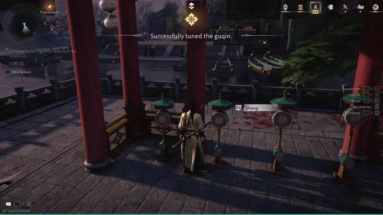 Right now you are in the Shadows in Bloom quest, trying to prove you are a musical prodigy by “tuning” a Guqin through a short drum sequence puzzle. Once you know which drum is which note, you can pass the Songstress’s Test in a single try.
