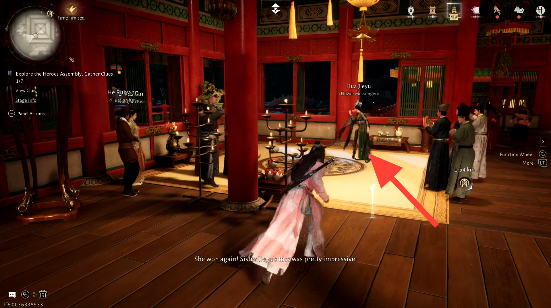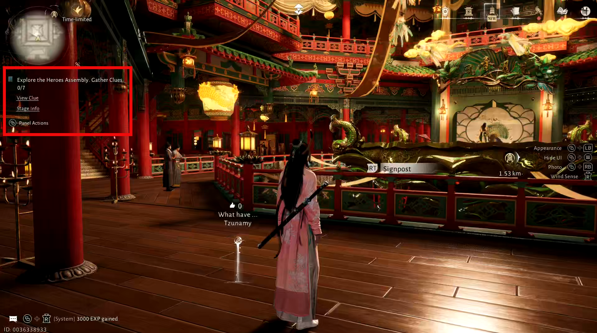 The “Explore the Assembly Hall. Gather 0/7 clues” objective in the “Shadows in Bloom” quest in Where Winds Meet takes place inside the Heroic Assembly at Revelry Hall. Here, gameplay shifts to investigation as you collect seven key clues by talking to NPCs, completing mini-games, debates, stealth sections, and exploring multiple floors. This objective uncovers major story details and advances the Jianghu Legacy questline, making it a crucial investigative phase of the quest.