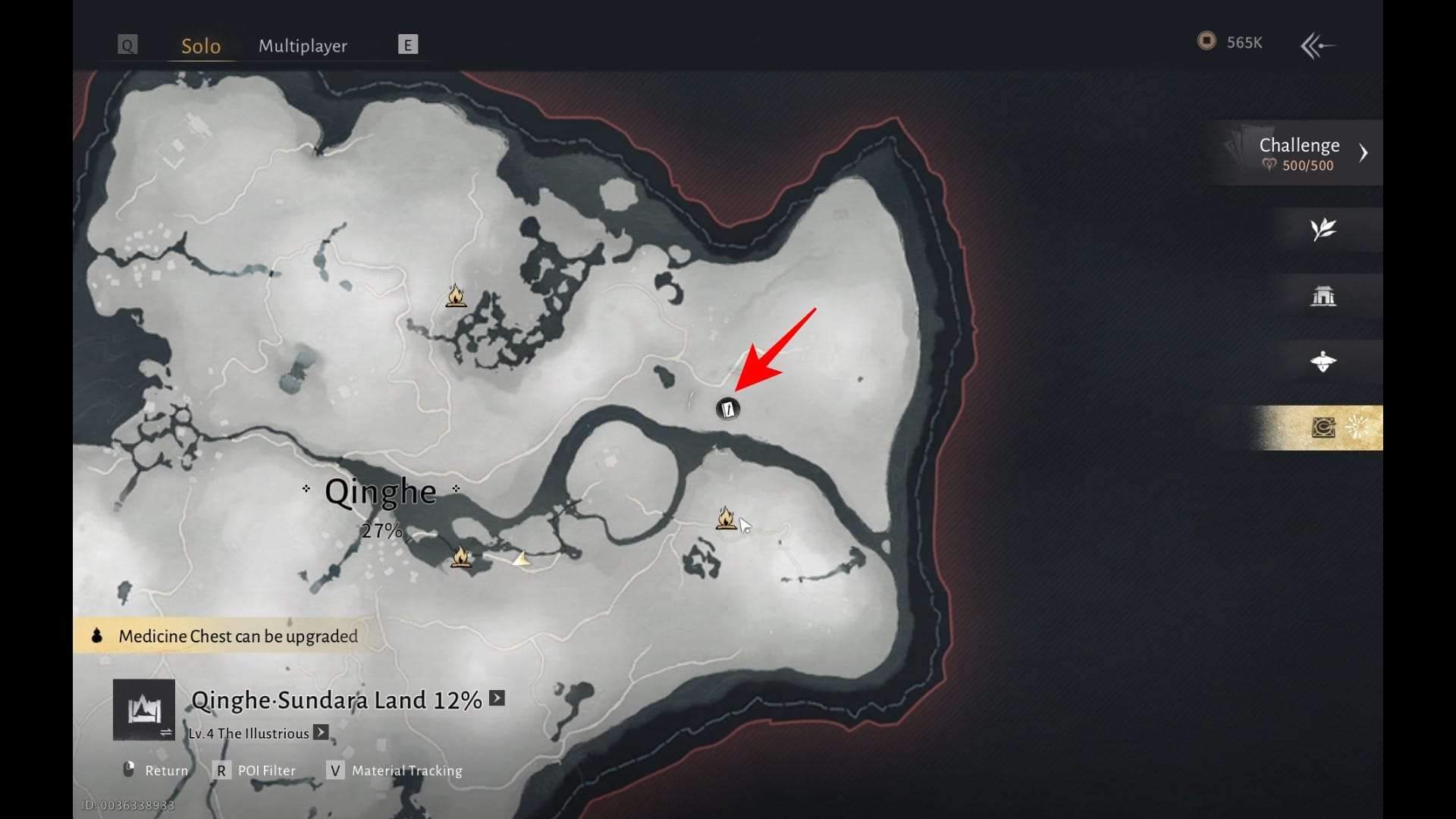 The spear is located in the Heavenquaker Spear Sanctum in Qinghe, specifically on the northeast side of the map.