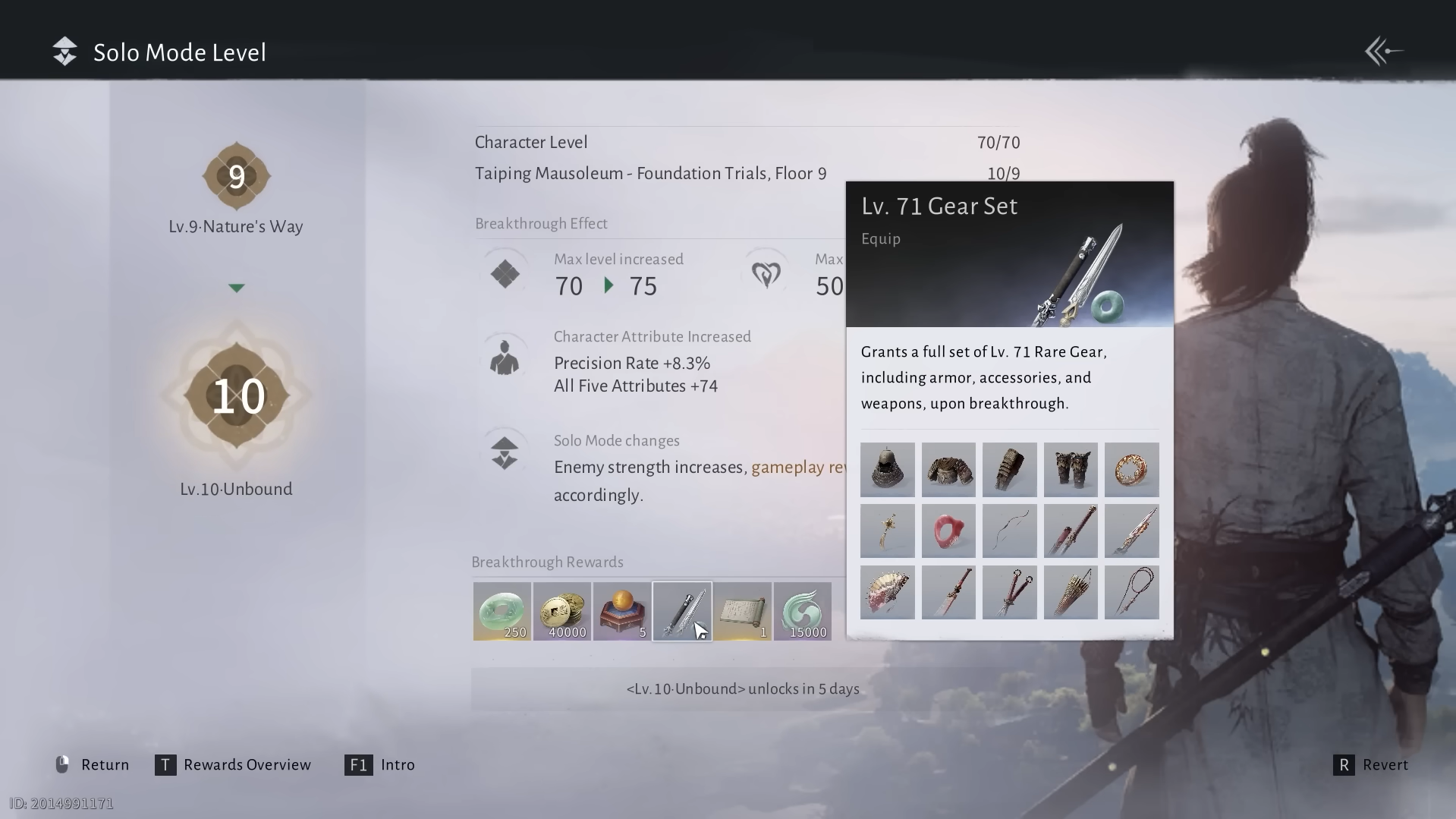 Breakthrough 10 (Unbound) is the 10th and final major level cap in Solo Mode, pushing your character from level 70 to 75. Unlike earlier breakthroughs, this one marks a true endgame transition, it unlocks the final gear tier (Tier 71), raises Inner Ways to Tier 6, and introduces the new tuning system with Shells and Gear Echo.