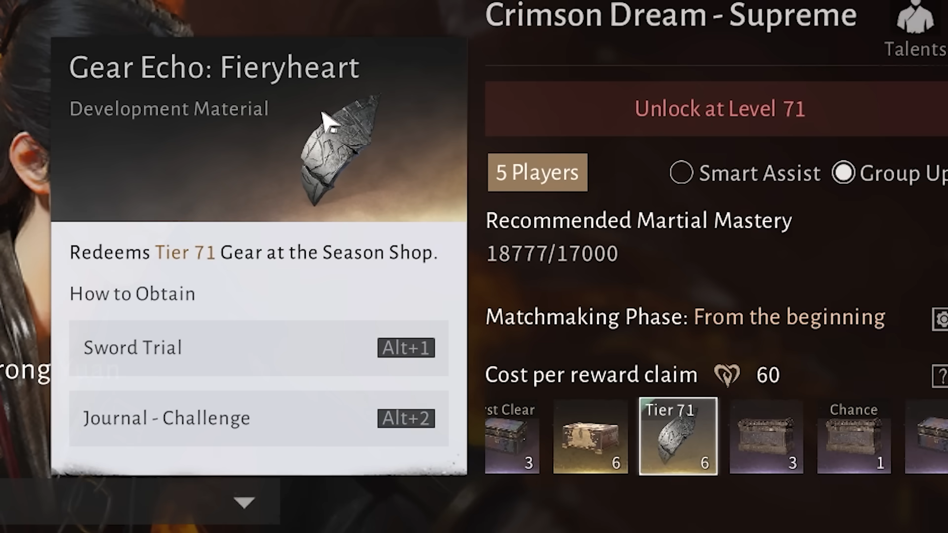 Prioritize Hero’s Realm and Sword Trial every week. Hero’s Realm now drops Supreme Tier 71 gear chests, higher legendary-rate loot, and tuning materials, while Sword Trial rewards Tier 71 path chests and Gear Echo: Fiery Heart, which is required for seasonal shop purchases. These two modes are the backbone of your Tier 71 progression.