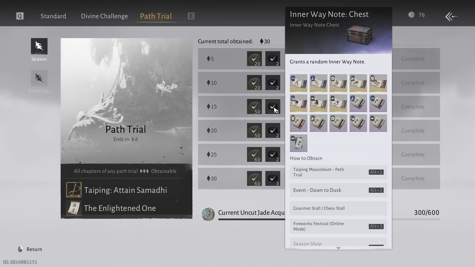 Use Path Trial (Taiping Mausoleum) as your main source of Inner Way Notes. Focus on one or two paths that match your build instead of spreading progress, and push your chosen Inner Ways to Tier 6 as soon as possible for a major stat boost.