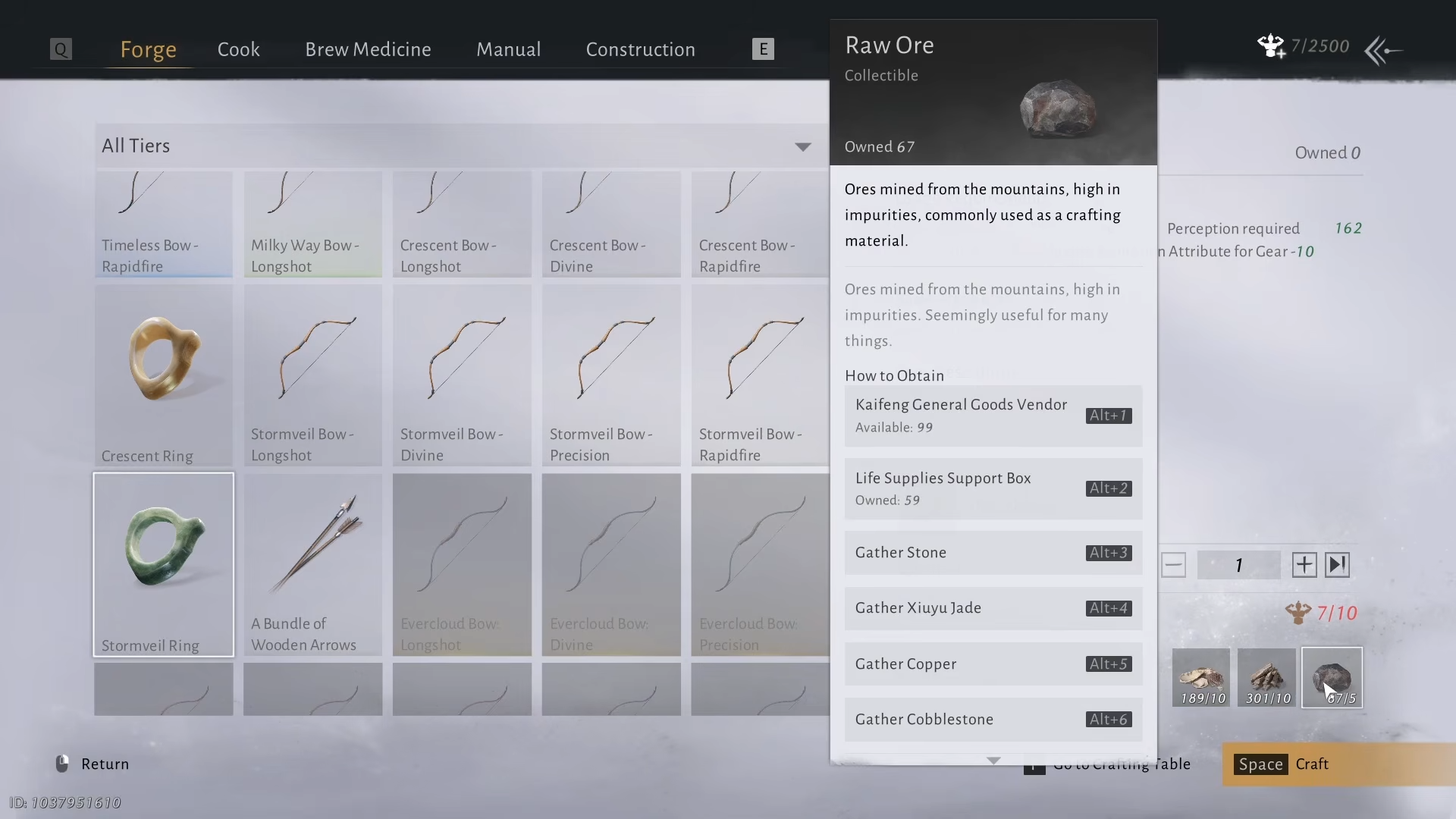 | Thumb ring mats | Gather raw ore now | Raw ore stays consistent in thumb ring crafting |