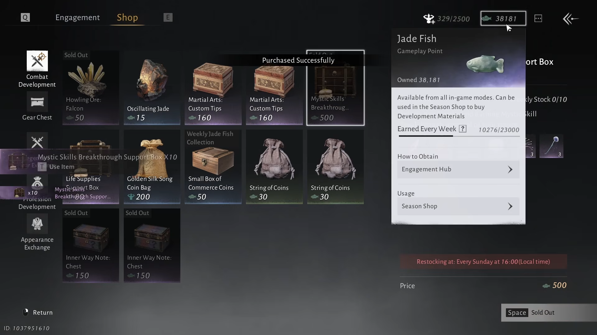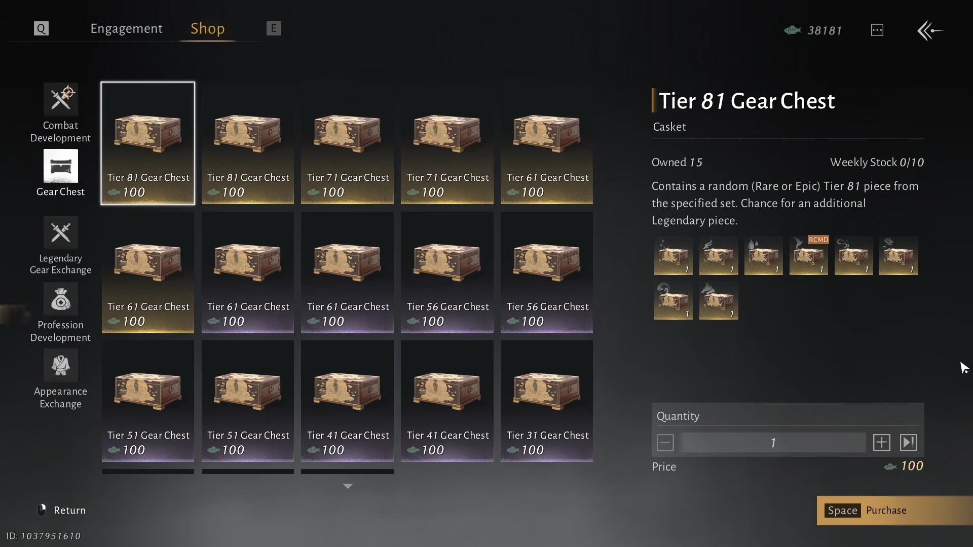 Jade fish helps you complete guild quests, and if you do not enjoy open-world gathering you can also purchase them instead. If you are still actively gearing at 81, it is fine to spend some here, but try to keep a cushion so you can react when the shop rotates to level 86-oriented items.