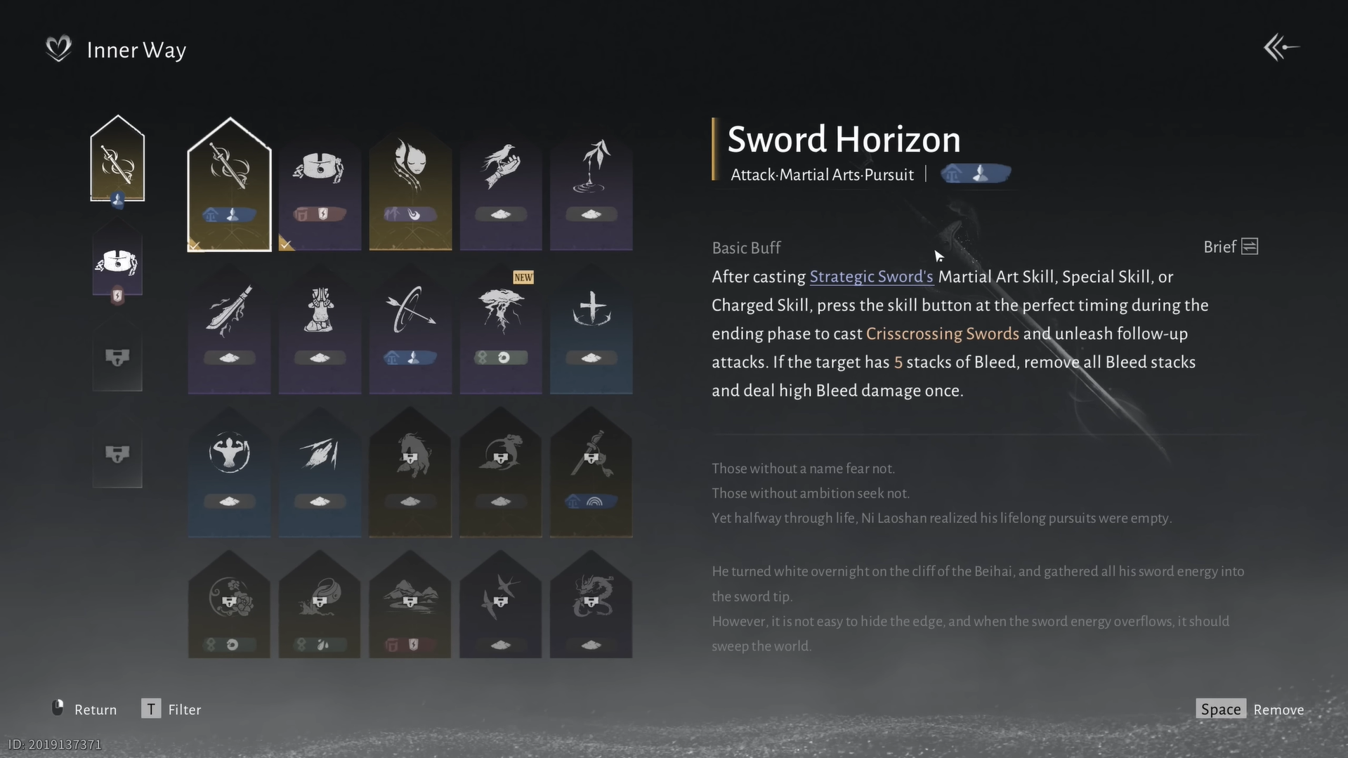 Ni Laoshan offers multiple copies of the "Unknown Old Book," each of which may contain Sword Horizon pages—essential for unlocking this rare internal art. Acquiring the pages is entirely luck-based, so it’s recommended to purchase all available copies, costing a total of 375,000 coins. Once you’ve collected enough pages, the Sword Horizon abilities are unlocked, boosting both your stealth and combat skills.