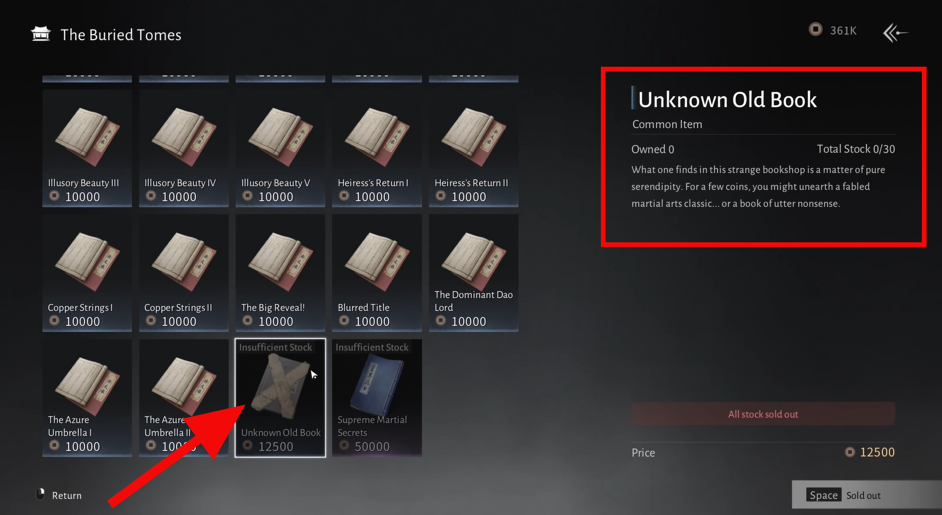 Buy all available copies of the Unknown Old Book, then open your inventory and use all of them to obtain the Sword Horizon Inner Art.