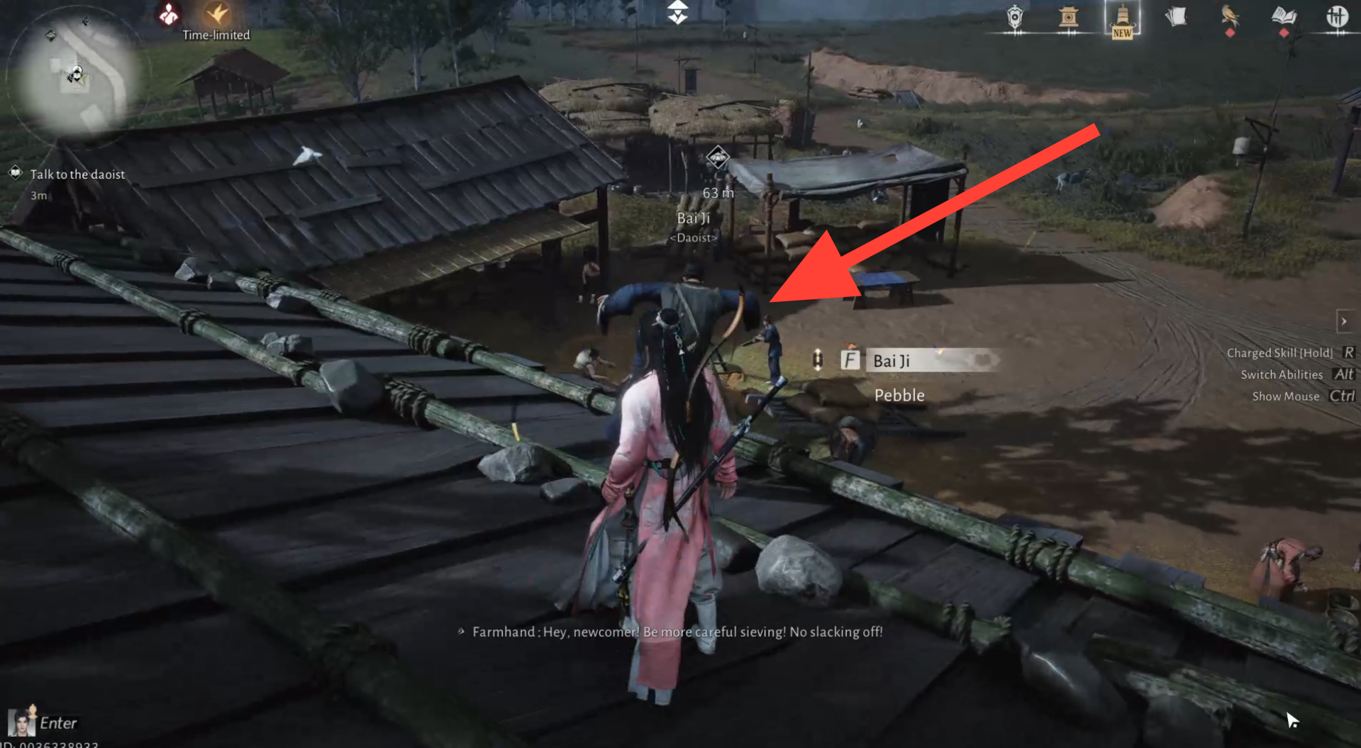 To begin this exploration quest, meet Bai Ji, who can be found standing on the roof of a barn in Plainfield, Kaifeng.