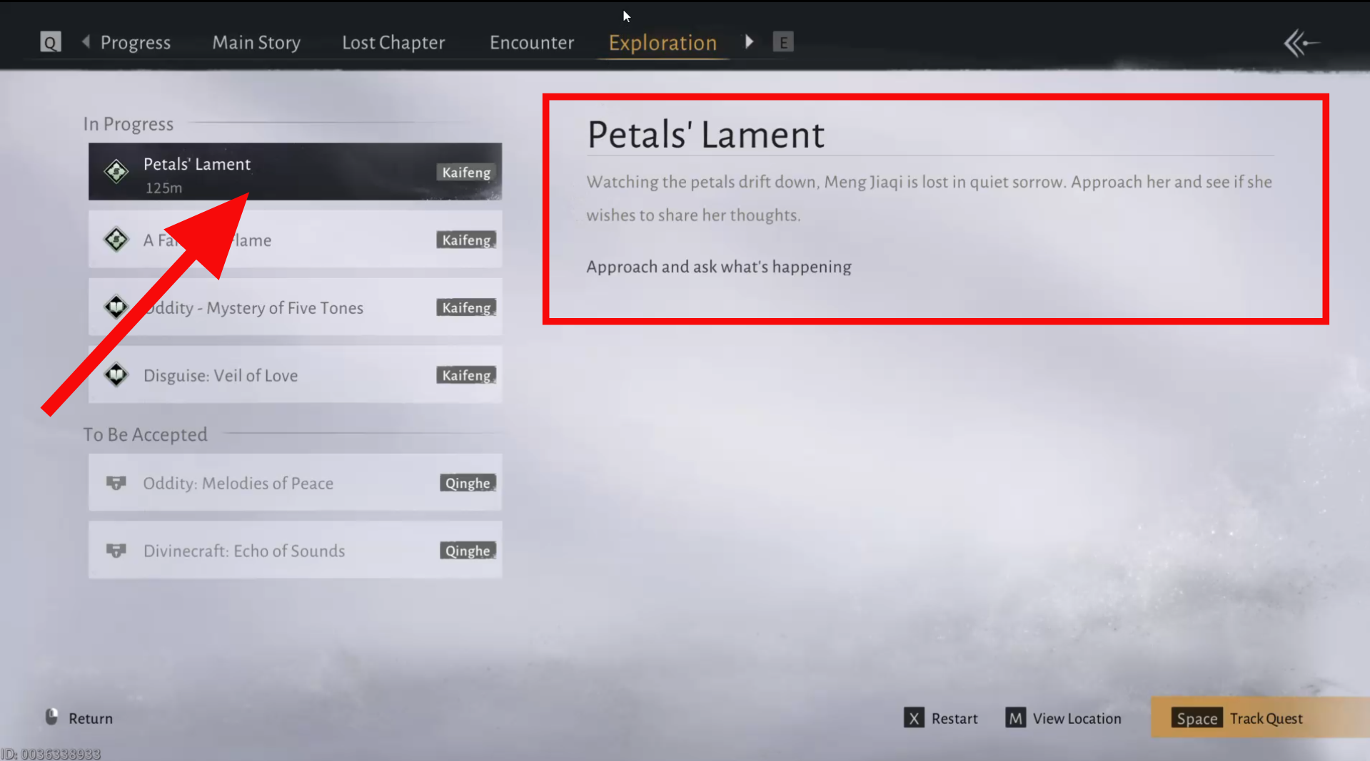 The quest begins when you speak with Meng Jiaqi at the Temporal Pavilion in Velvet Shade, Kaifeng City.