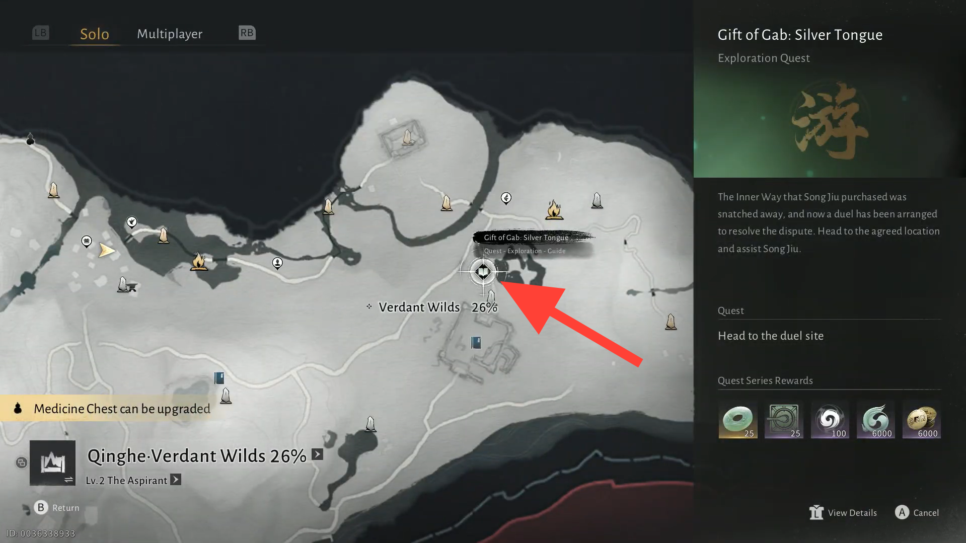 Speak with Song Jiu at the marked location, then follow him as he asks you to accompany him to the duel site.