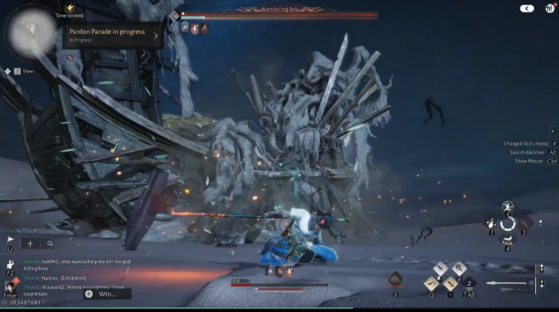 The Wandering Ark is classified as a dangerous world boss and appears as a massive ship-like structure moving within the sandstorm. The fight revolves around managing the boss’s energy and exploiting its weaknesses during specific moments.