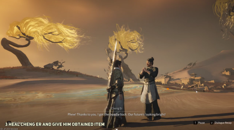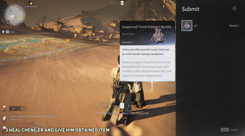 The tale also highlights the game’s environmental storytelling approach. Instead of traditional quests, short narrative events reveal small stories about travelers, bandits, and explorers scattered throughout the world. Recovering the Suspected Tomb Robber’s Bundle and returning it to Cheng Er is a simple task, but it fits naturally into the desert setting and lore of Jade Gate Pass.