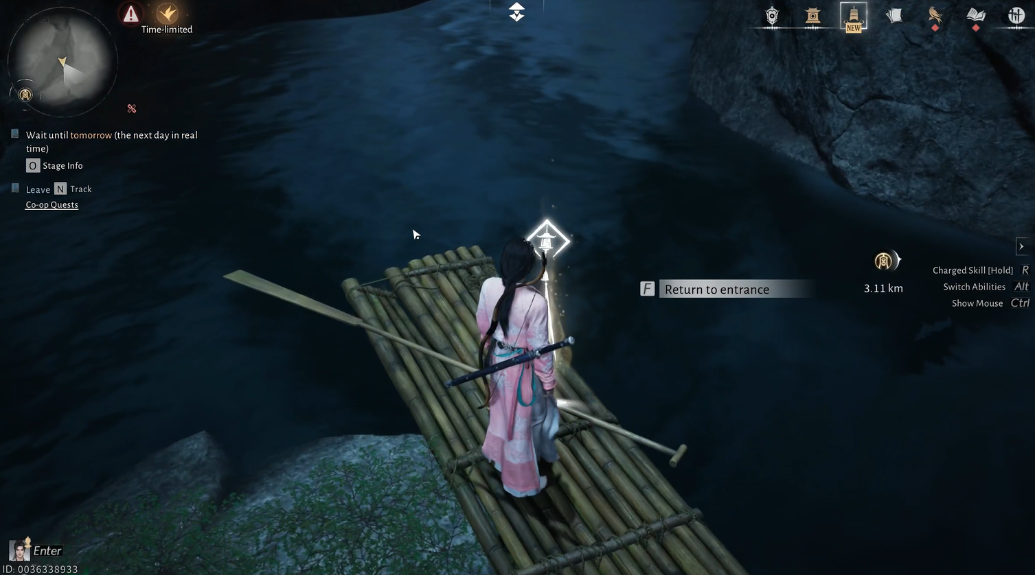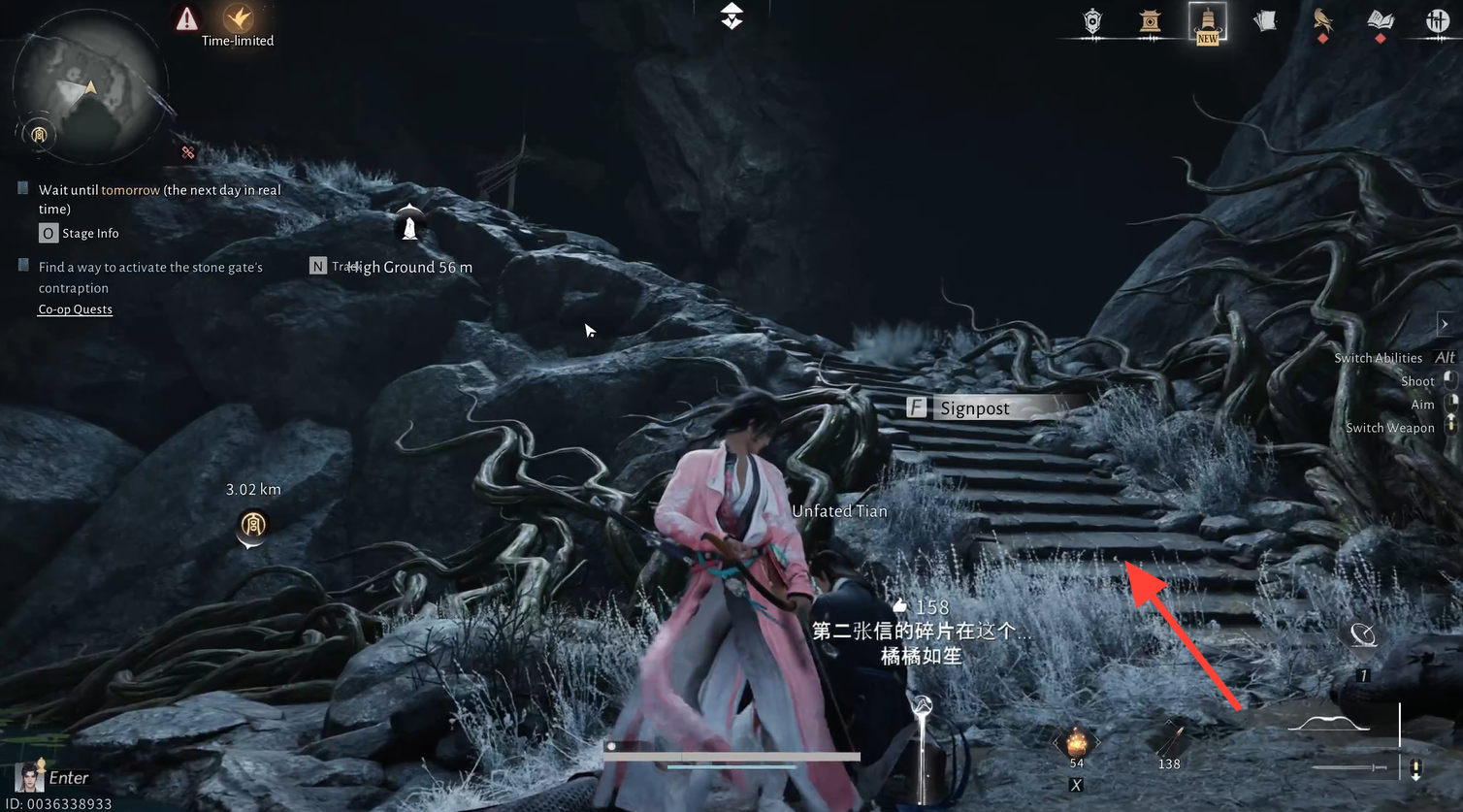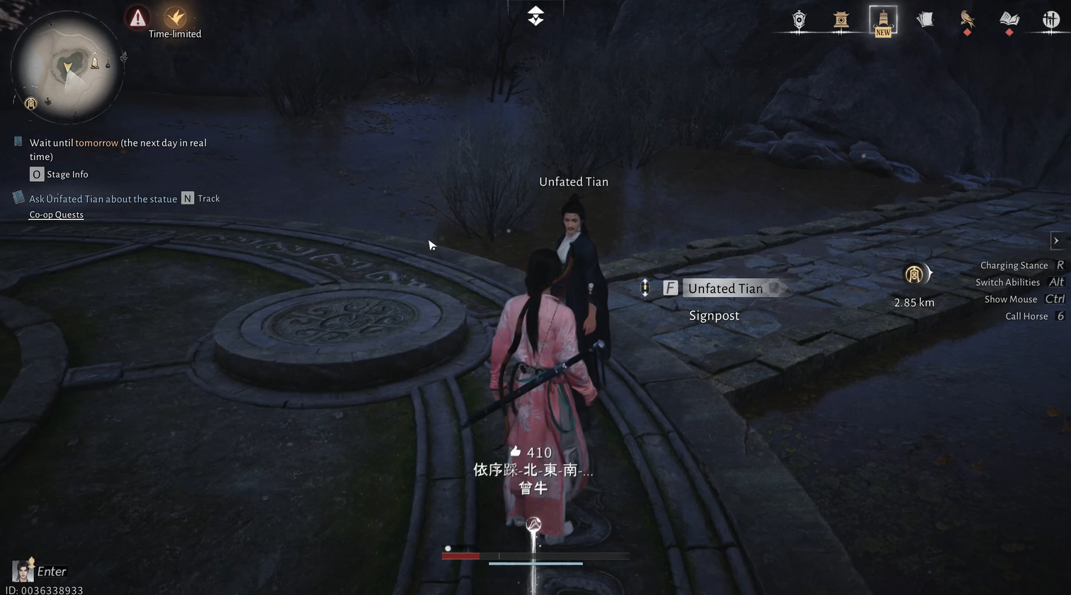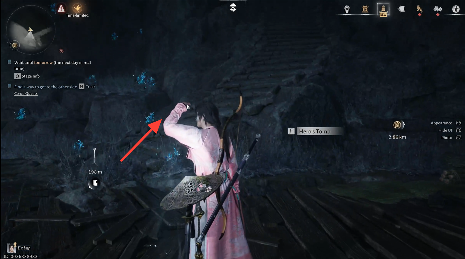 Travel to Moonveil Mountain in Qinghe, near the lake at Crimson Cliff and speak with Unfated Tian, who explains the shrine hidden under the lake.