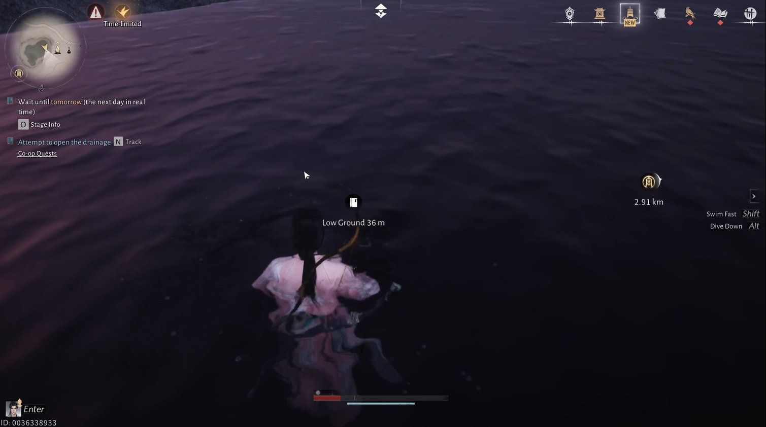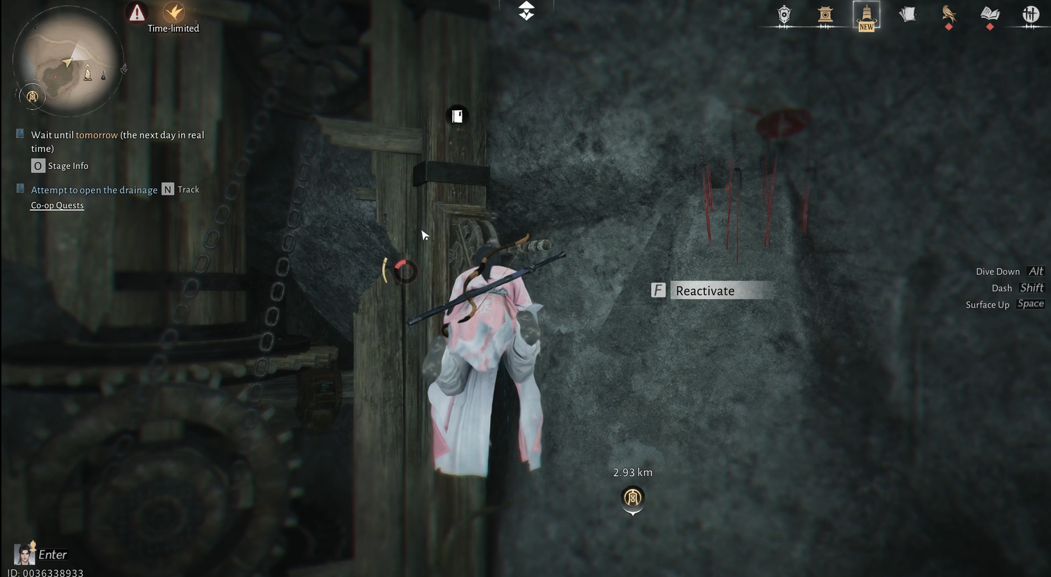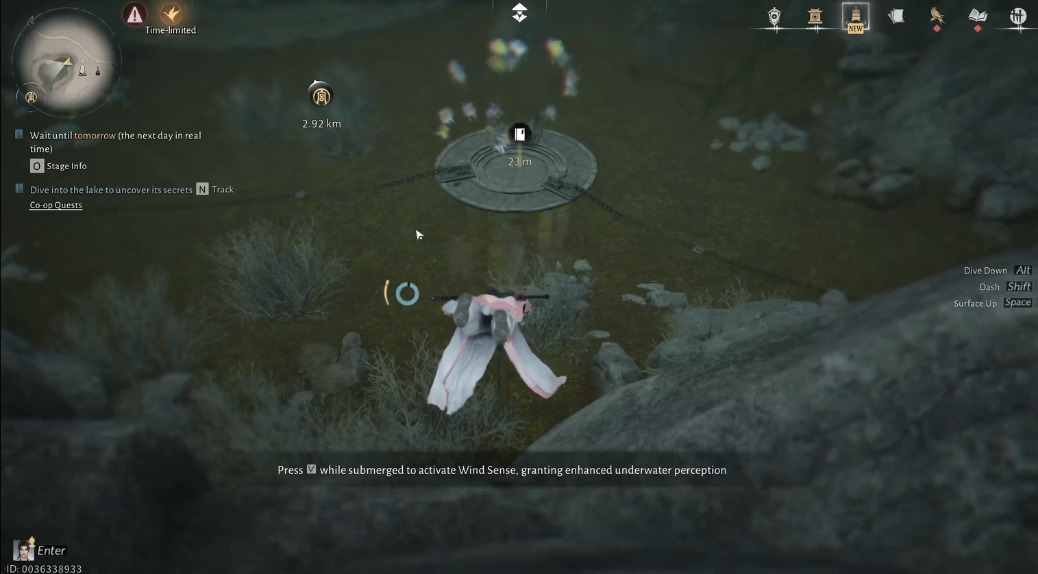 After all three are activated, the water recedes, revealing the lake’s muddy base. Follow Tian to the bottom of the lake.