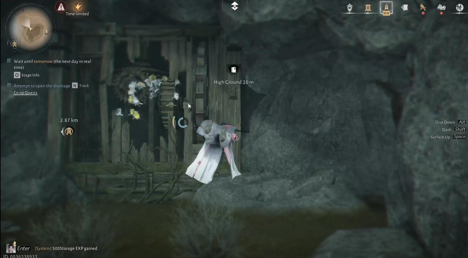 Follow the tunnel until you reach dry land again, where Uncle Tian will be waiting in front of a gate.