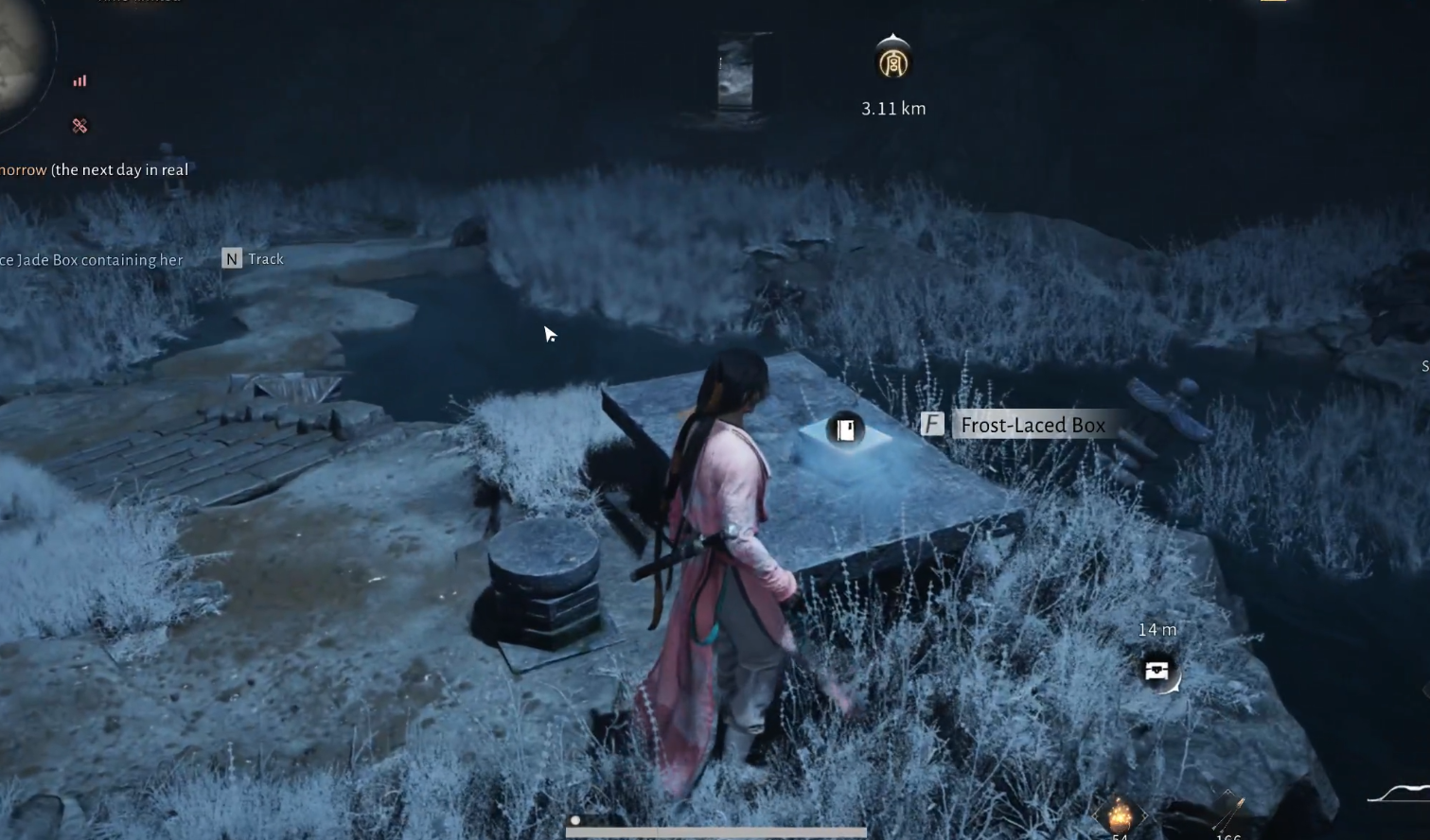 Pick up the Frost-Laced Box from a nearby table, go near the altar of Li Zhenzhen, the Lunar Goddess and hand it over to Uncle Tian.