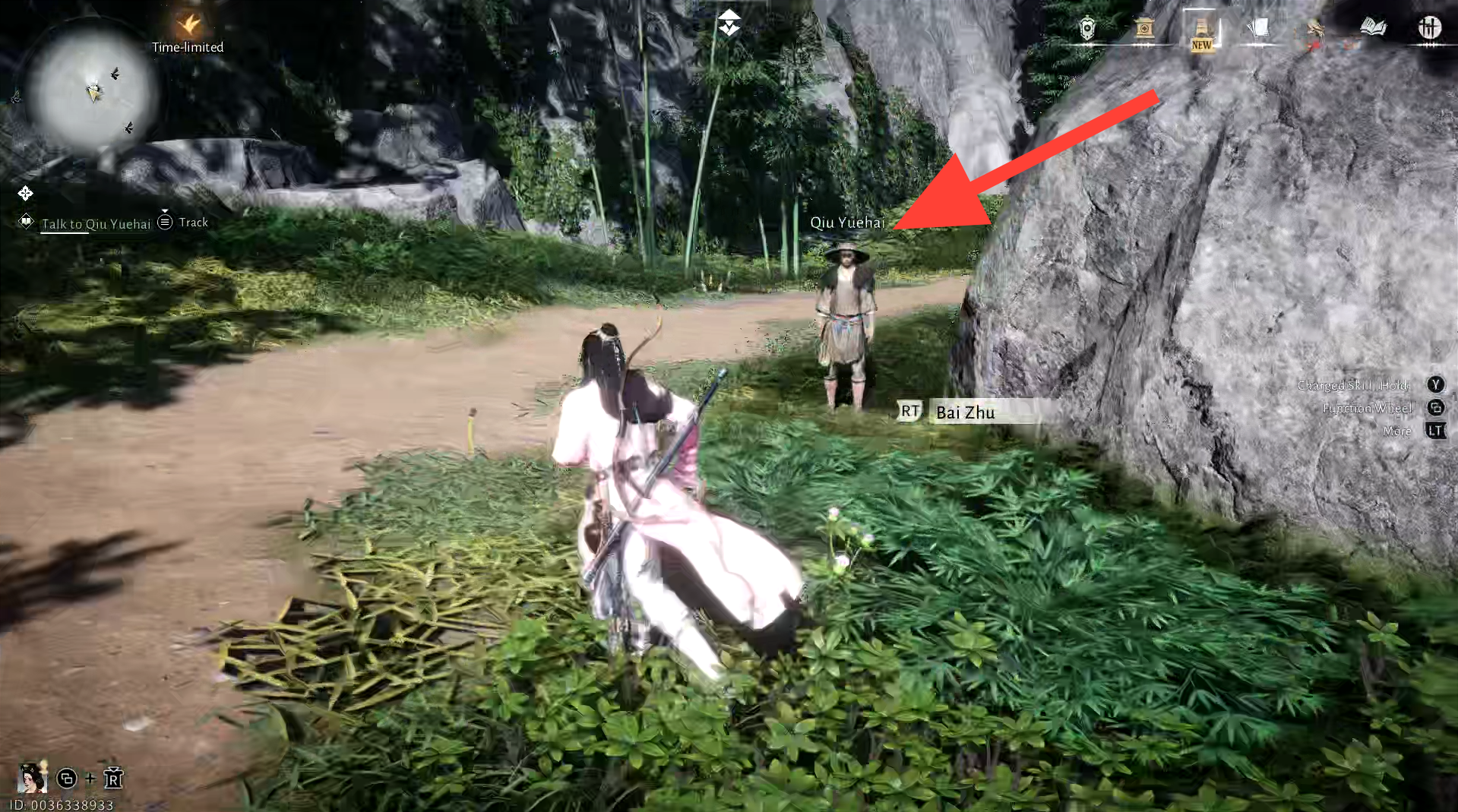 Find Qiu Yuehai at the marked location shown above and speak with him to begin the exploration quest.