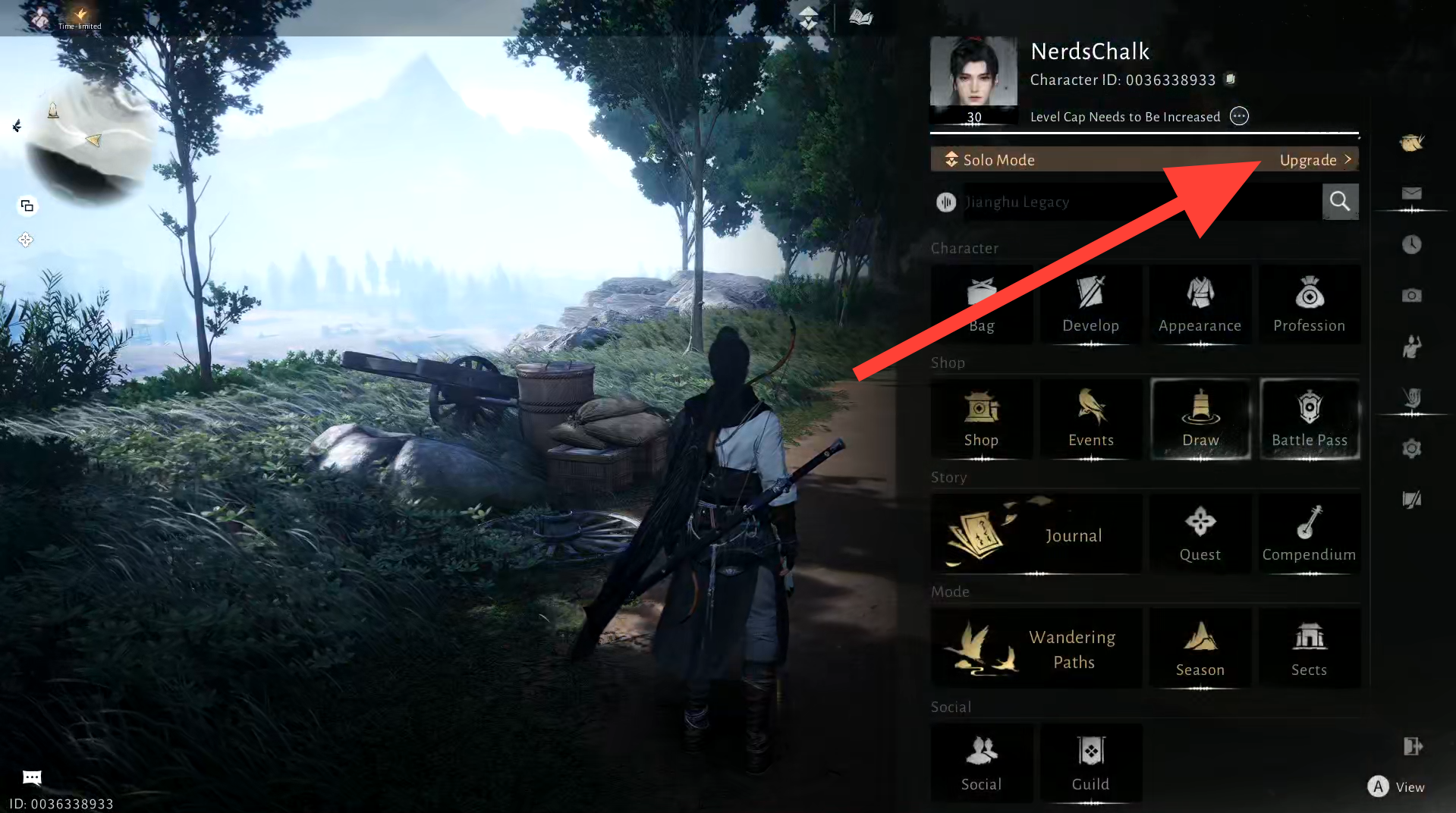 Open the in-game menu and navigate to the Solo Mode Level panel.